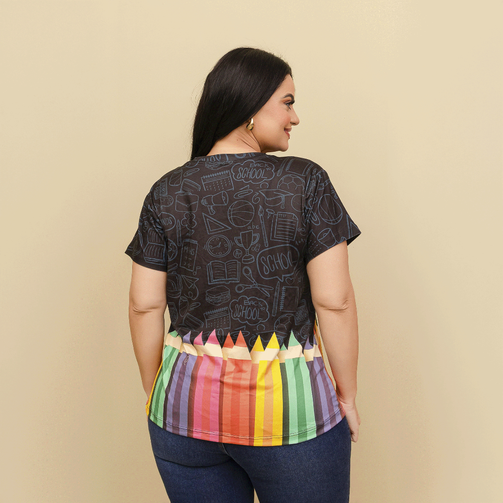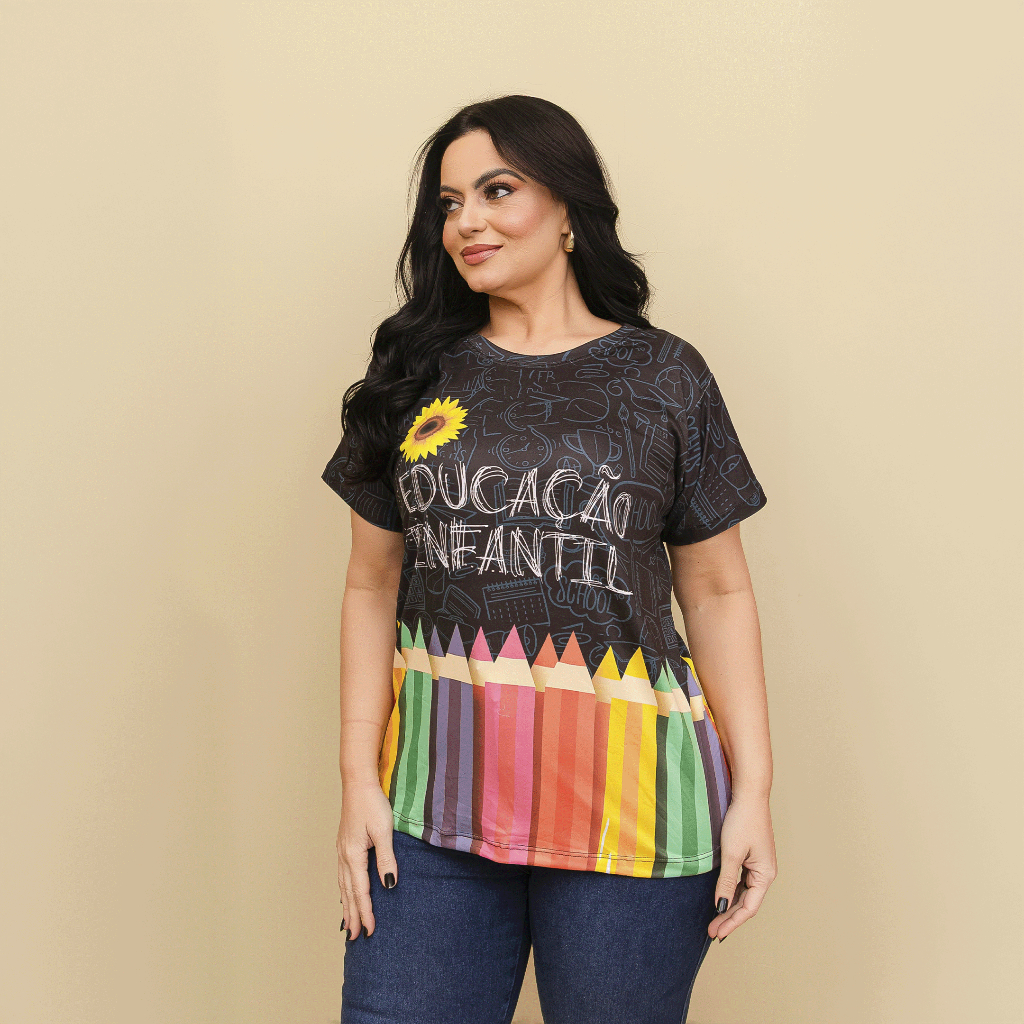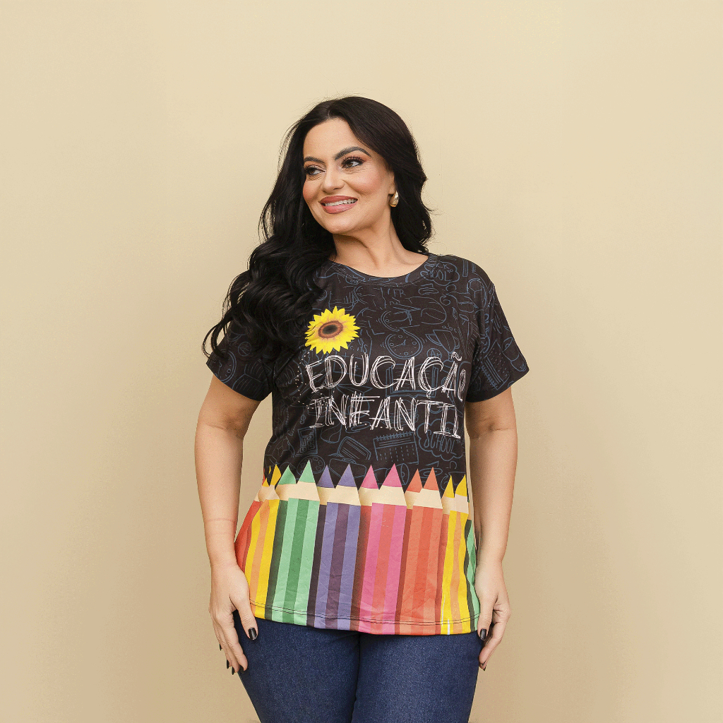 Kit Professora Educação Infantil 3 Tshirt Blusa Feminina Baby Look Educação Infantil Pink+Azul+Preto