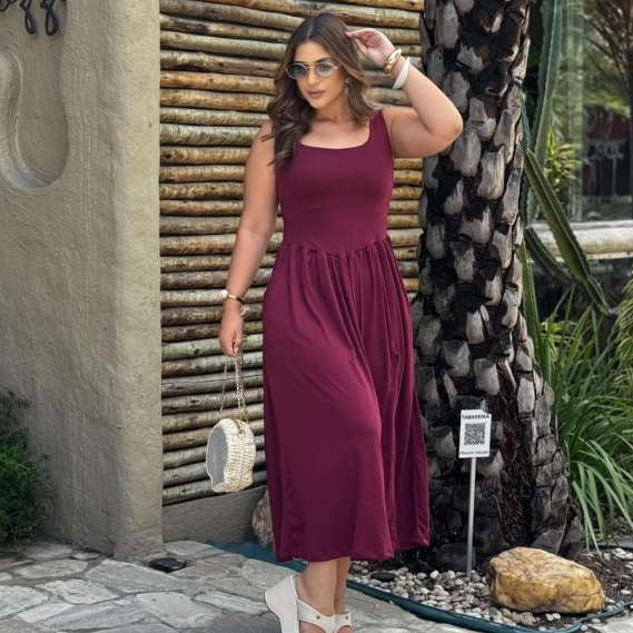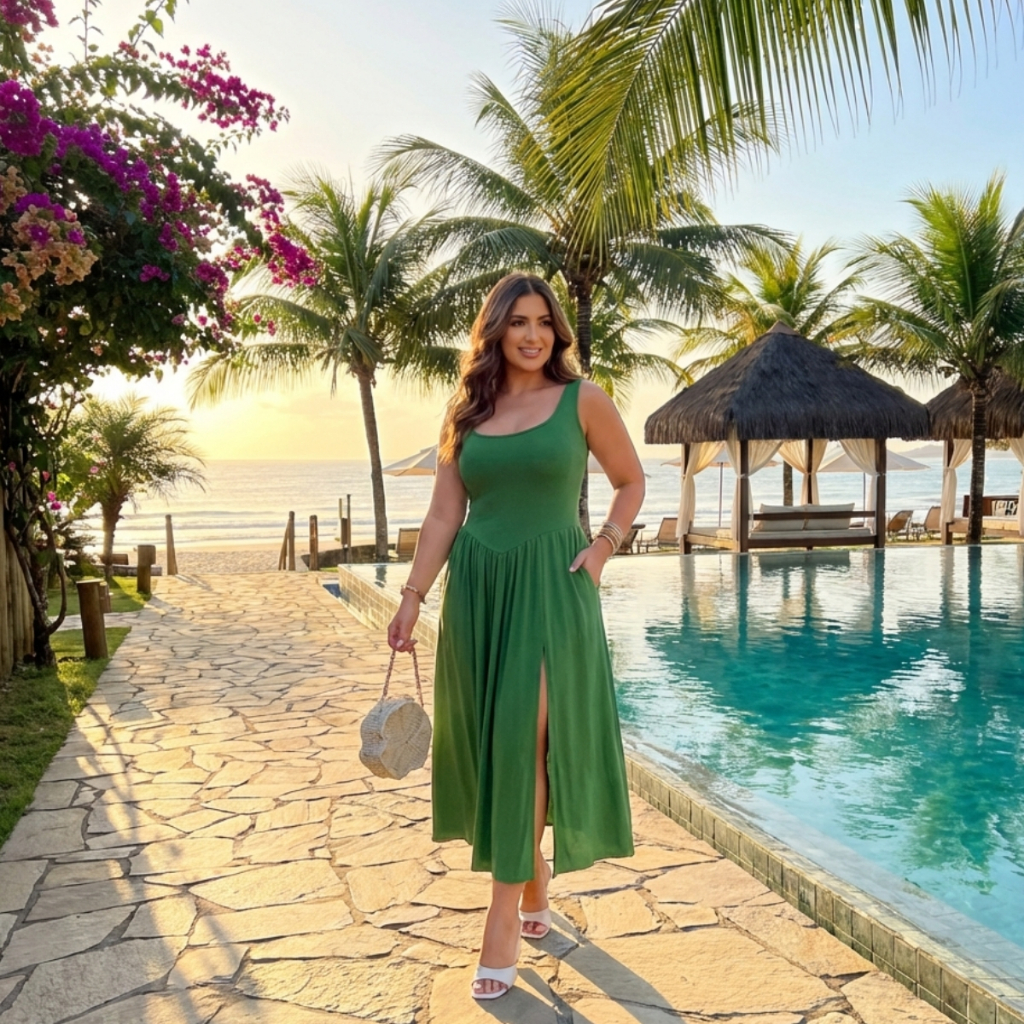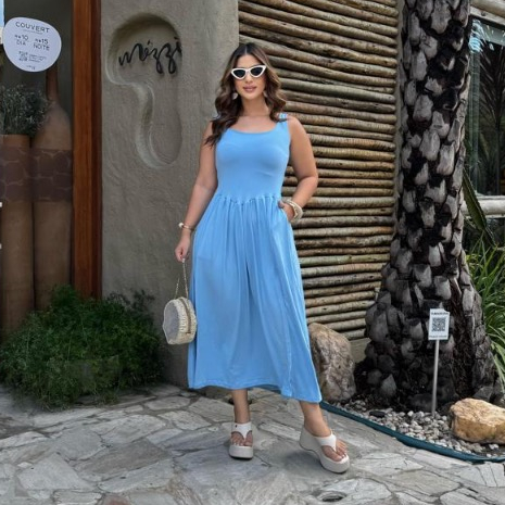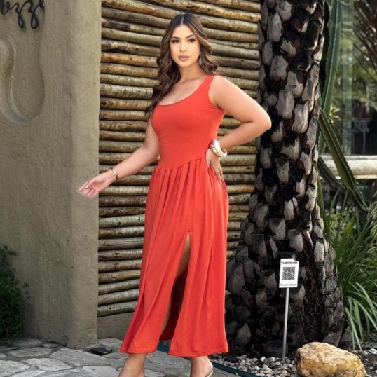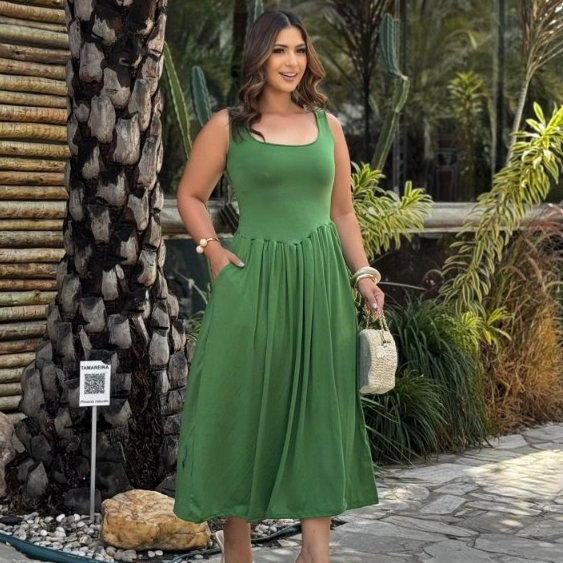 Vestido Livia Longo Duna Regata com Fenda e Bolsos Moda Verão