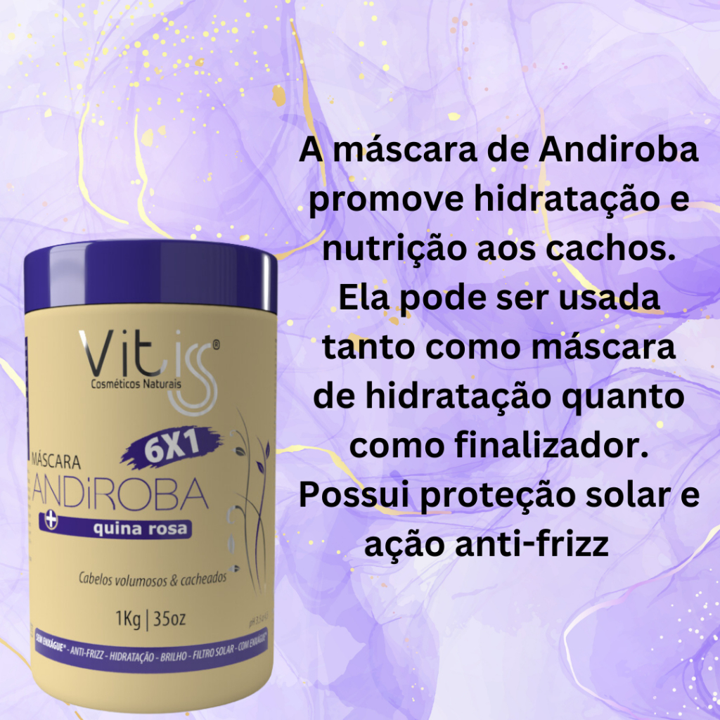 Mascara capilar hidratação andiroba + quina rosa Vitiss 1 kg Cachos Definidos Antifrizz