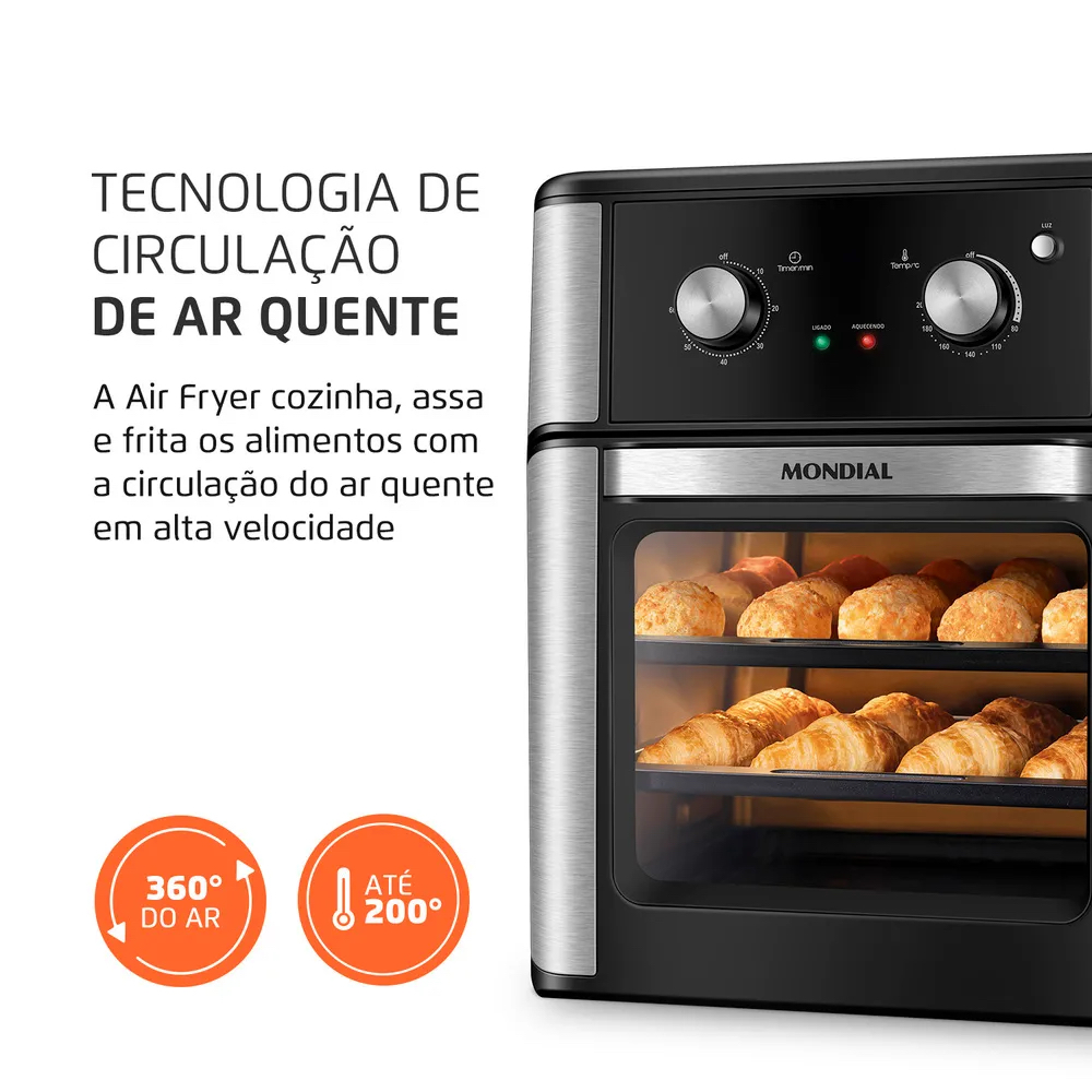 Fritadeira Air Fryer Forno 12L Mondial AFON-12L-AB 2000W 110V Preta Sem Óleo