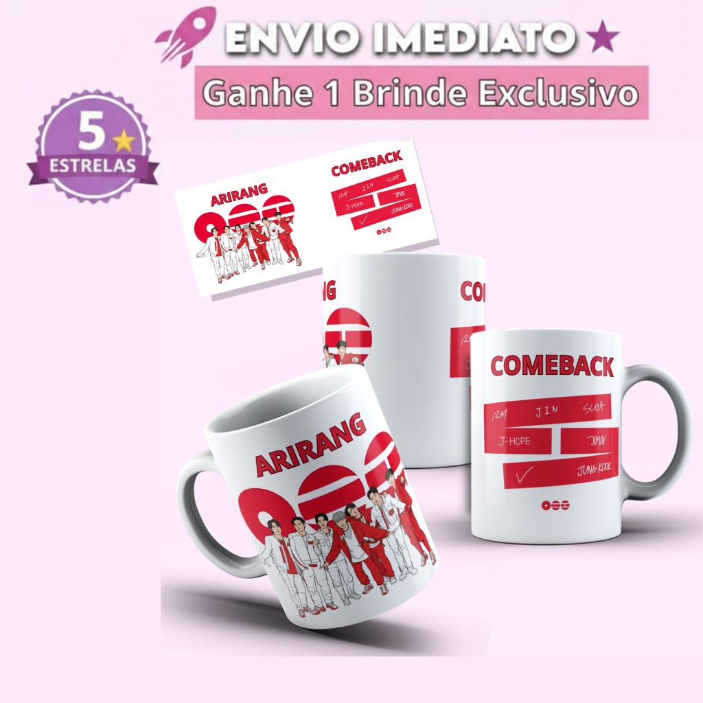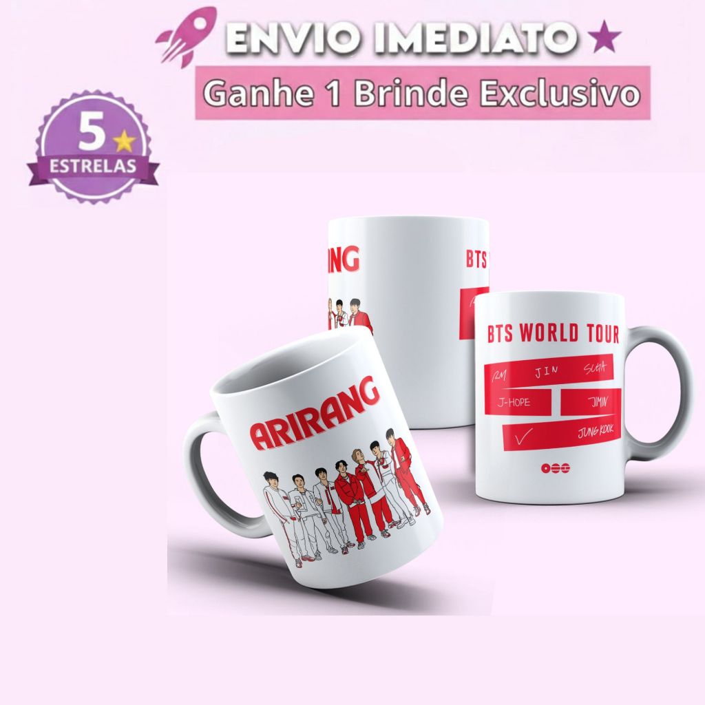 Caneca BTS World Tour Arirang 2026 + Photo Cards Brinde Especial K-Pop Army Presente