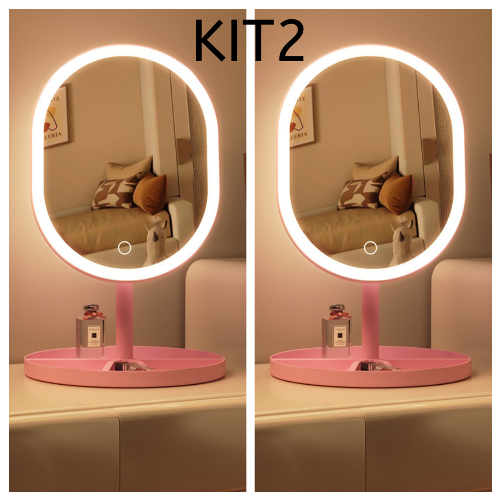 Espelho De Maquiagem Recarregável Inteligente Oval Com Luz De Claro Led Ajustável Portátil Dobrável