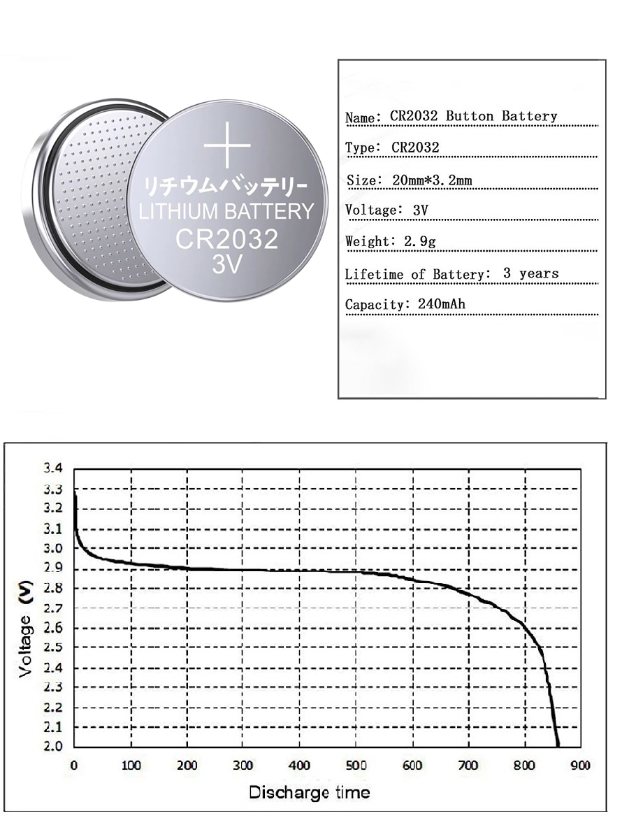 Pilha Bateria Para Relógio Tipo Botão CR2032 3V Moeda Redonda Baterias DC001