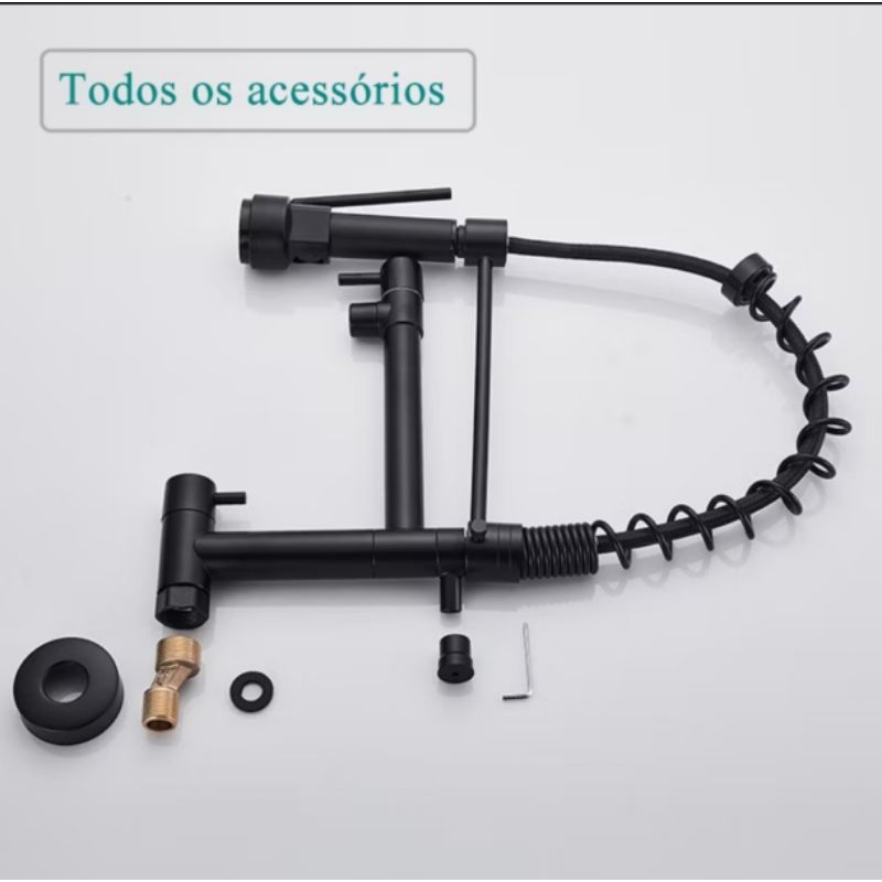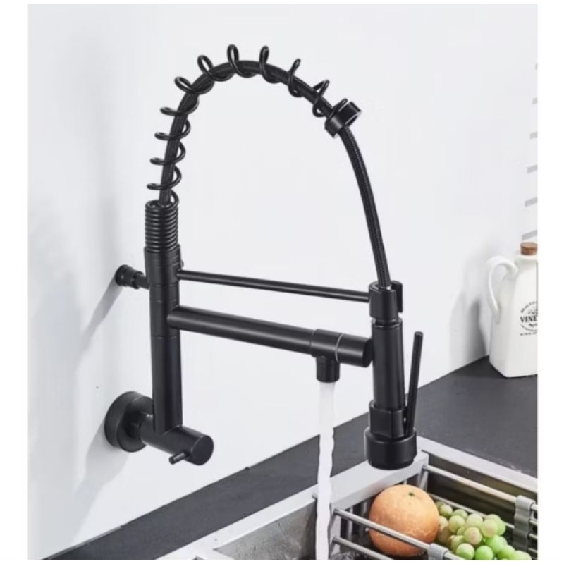 Torneira malibu Cozinha Gourmet Montada Na Parede, preto água fria de latão com flexível pulverizador15266B