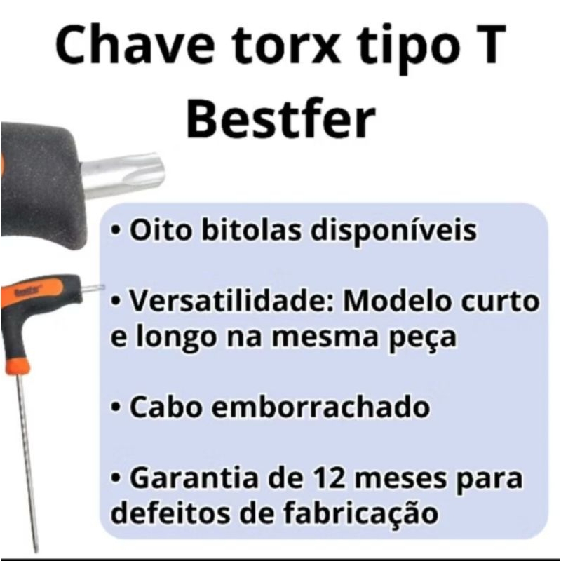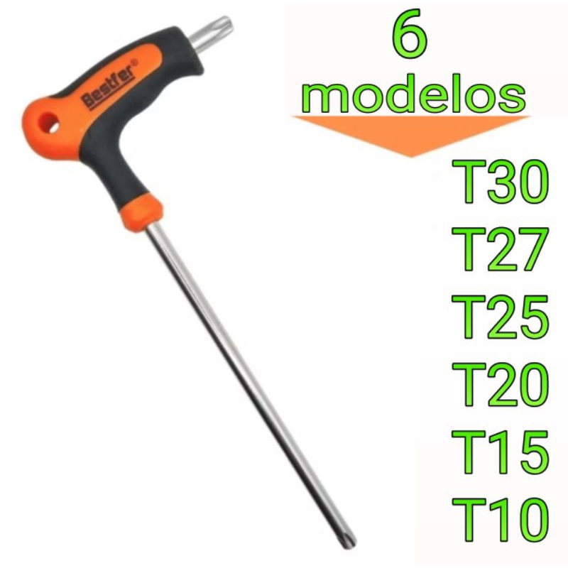 6pc Chave torx cabo T T30 T27 T25 T20 T15 T10 15676