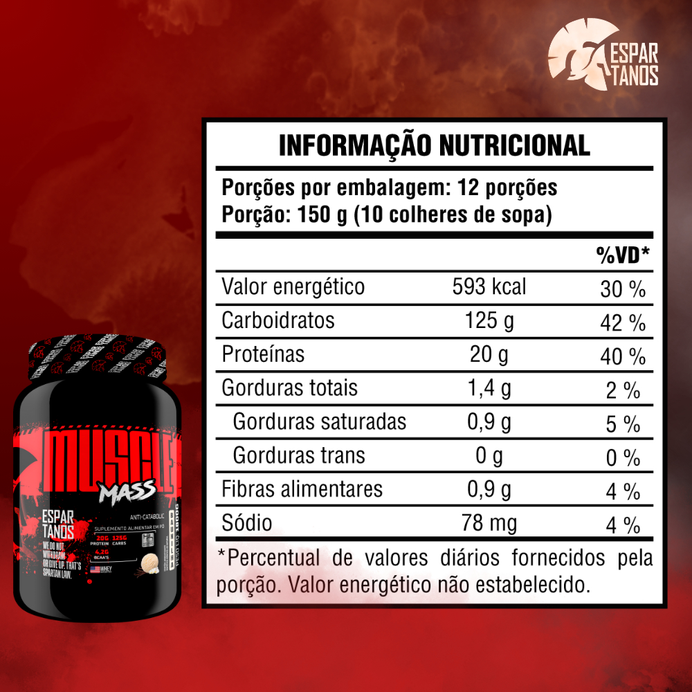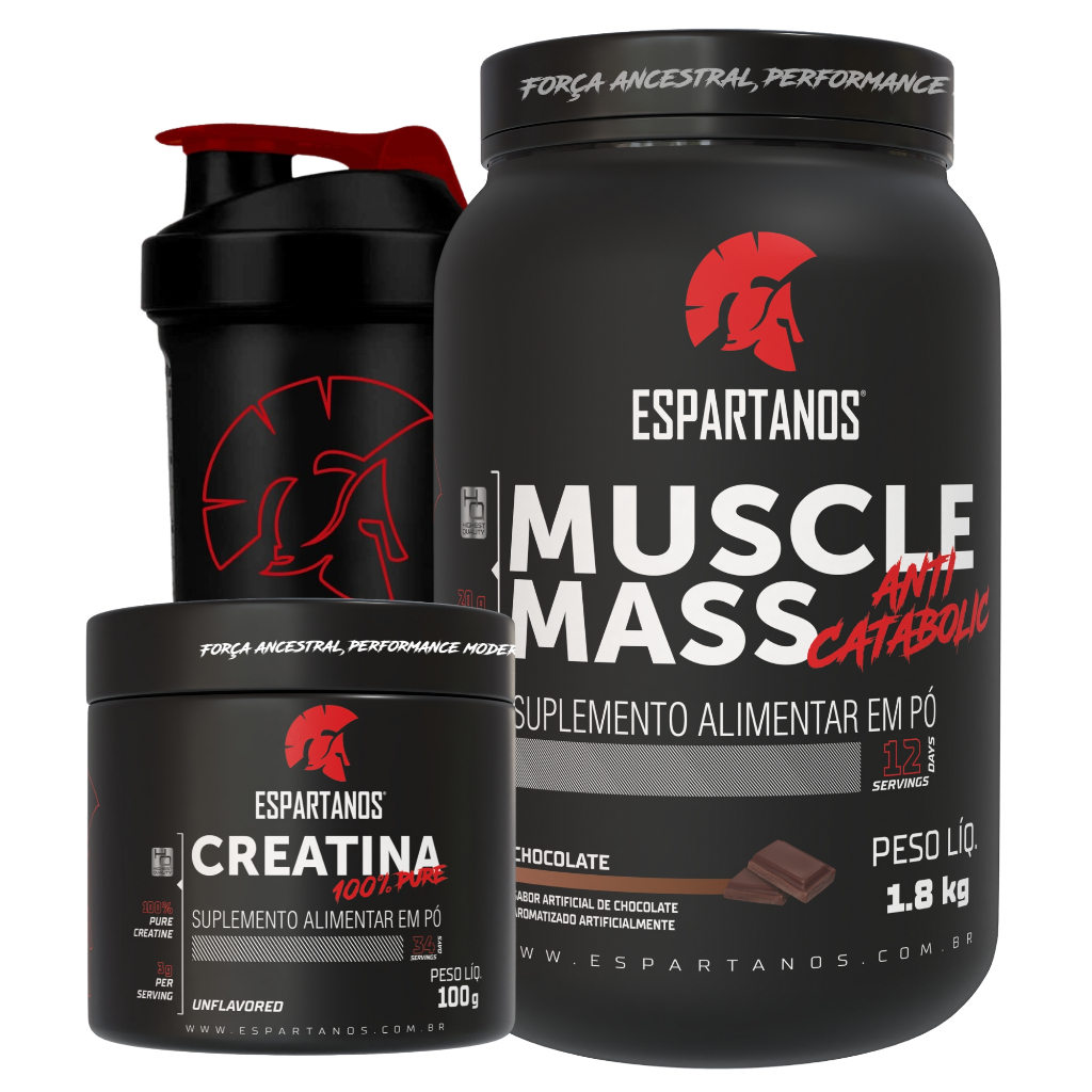 Kit Massa Hipercalórico MUSCLE MASS + Creatina 100g + Coqueteleira - Espartanos