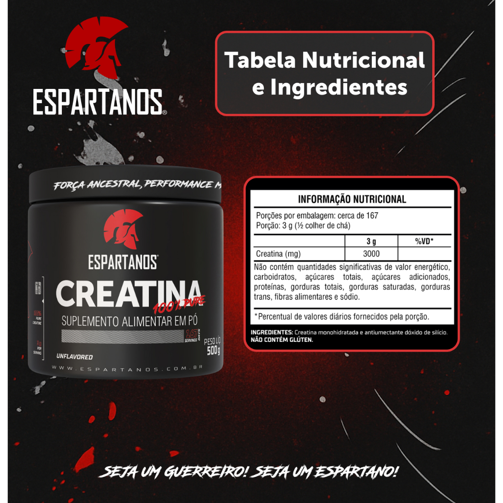 Creatina Monohidratada 100% Pura 500g - Espartanos Suplementos