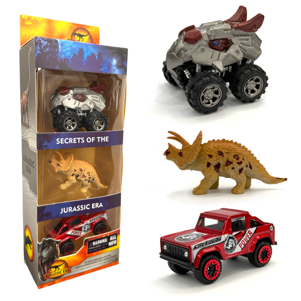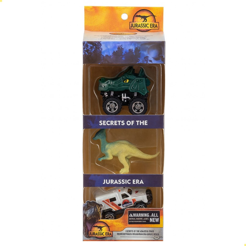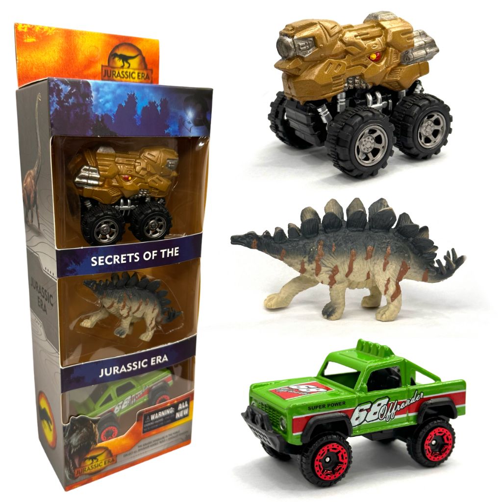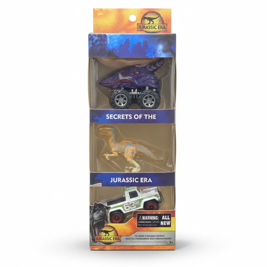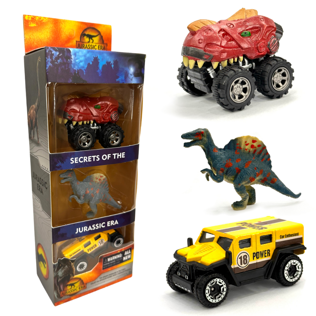 Kit 3 Carrinho de Fricção personagem cartelado Dinossauro / Carro de ferro/ Brinquedo para Crianças