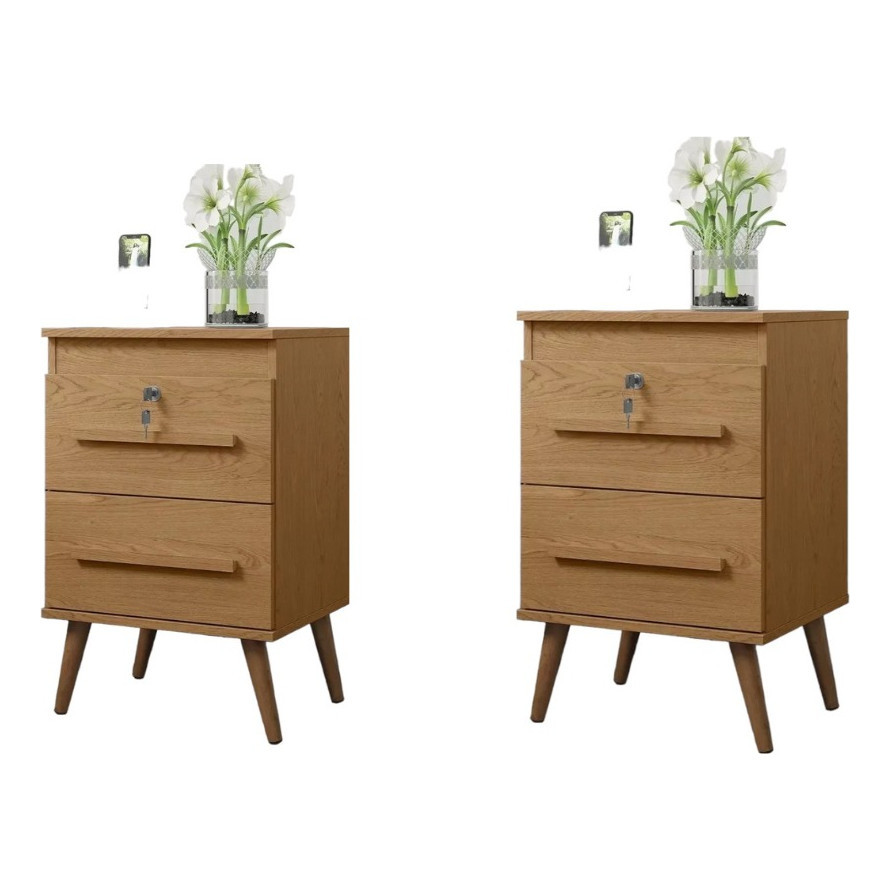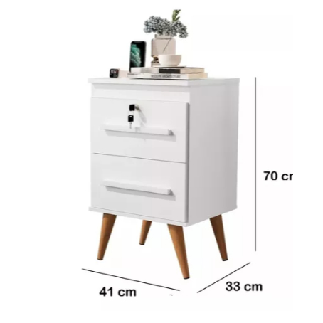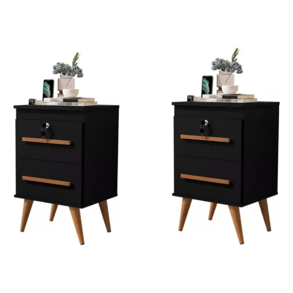 Kit 2 Mesa De Cabeceira Retro 2 Gaveta Chave