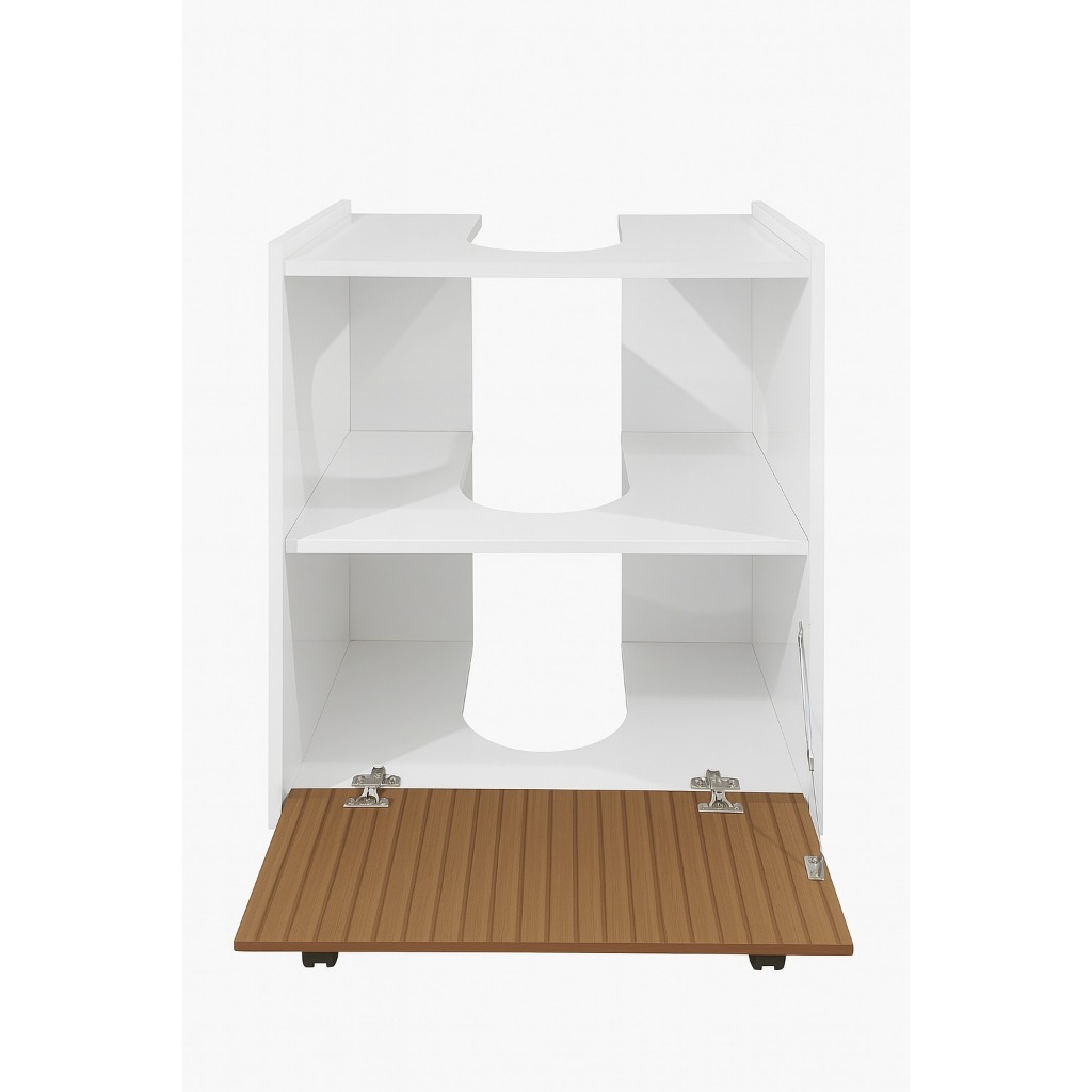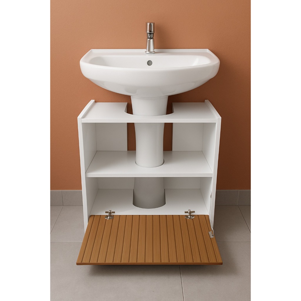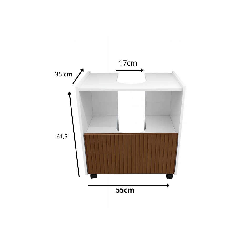 Gabinete Coluna para Pia de banheiro 1 Porta e com Prateleira Organizadora Branco Ripado