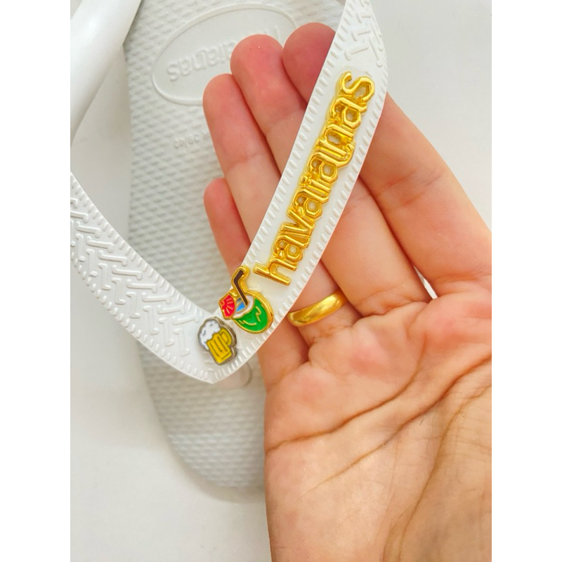 Chinelo Havaianas Top com 4 Pingentes Praiano + placa Hav Dourada 23/24 ao 45/46 Original ®️