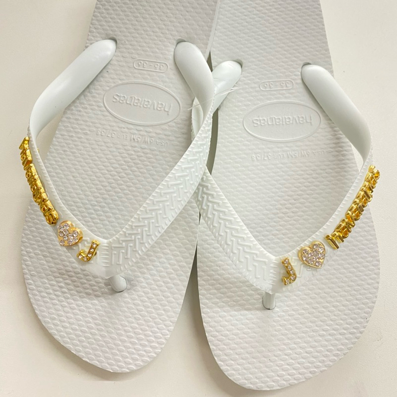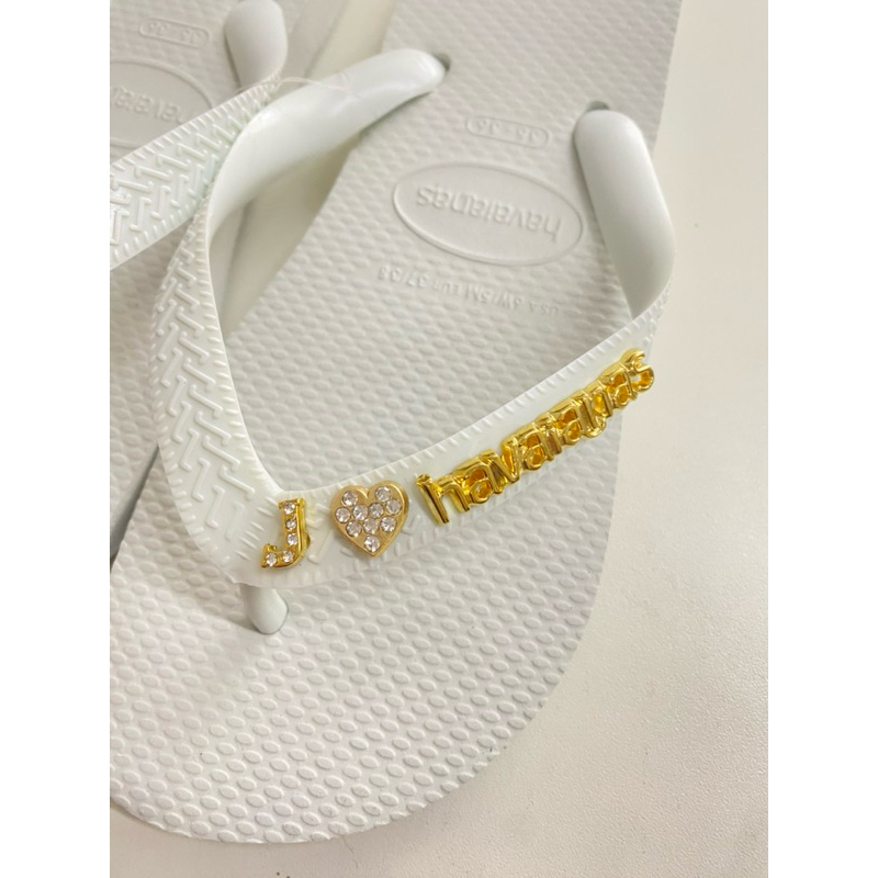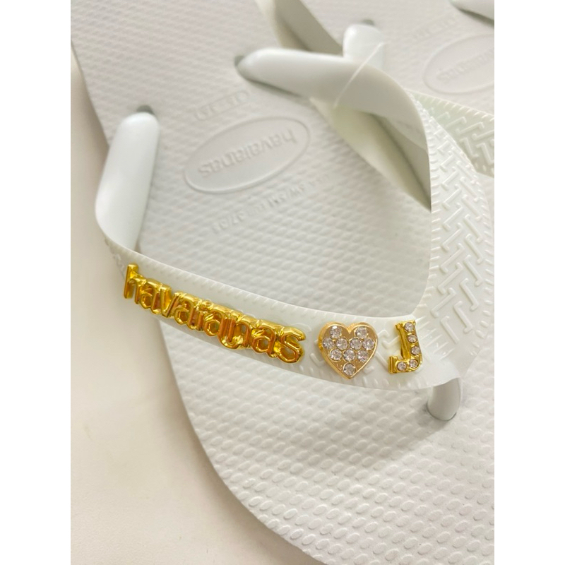 Chinelo Havaianas Top branco com 4 Pingentes (2 iniciais 2 corações) placa Dourada 23/24 ao 47/48 Original ®️