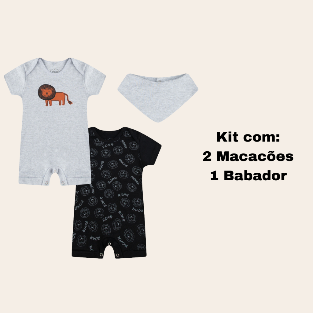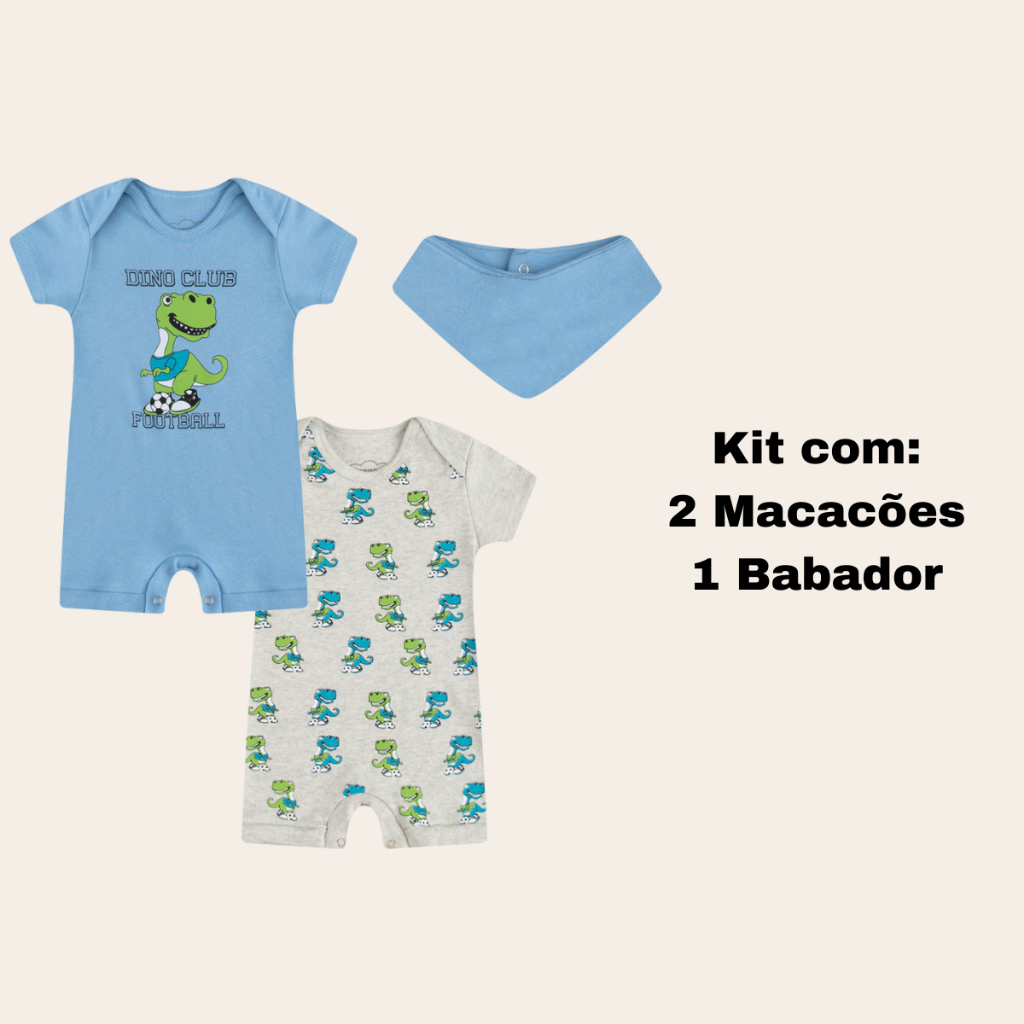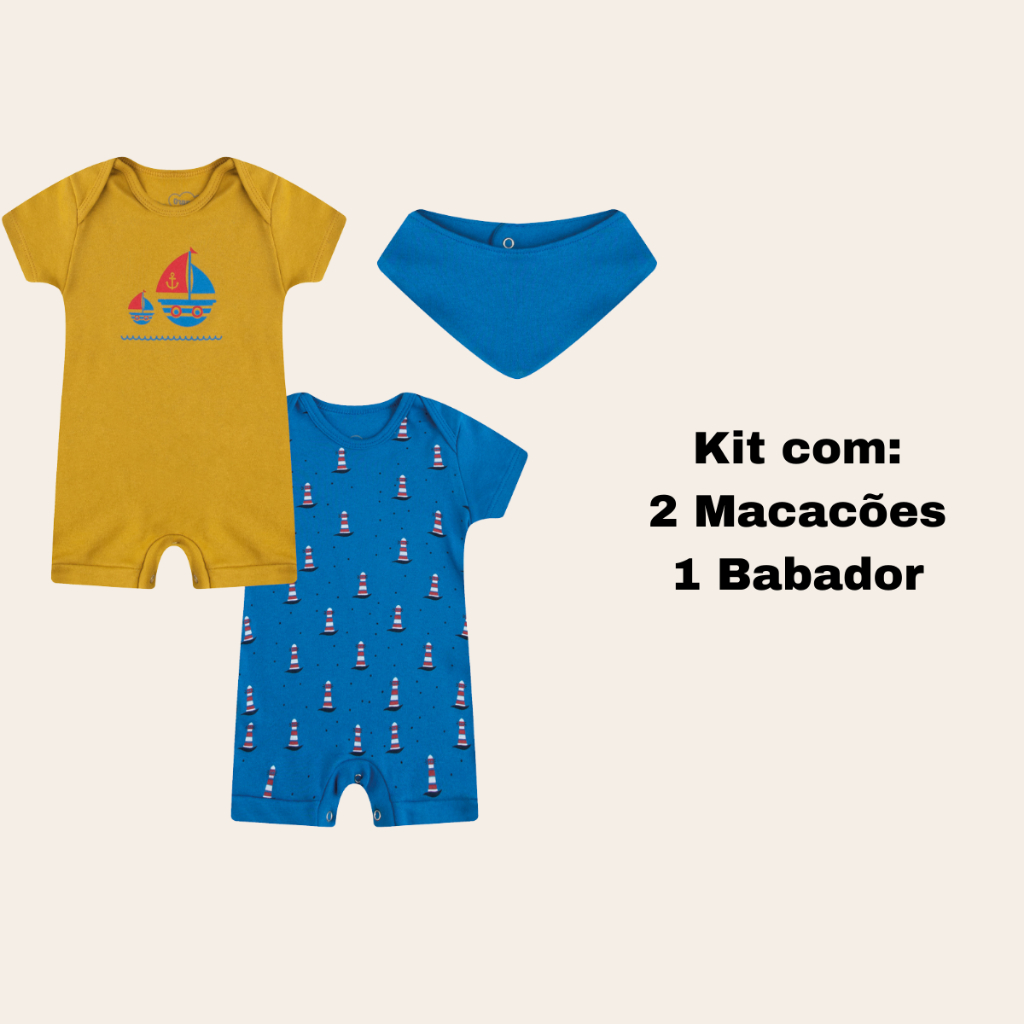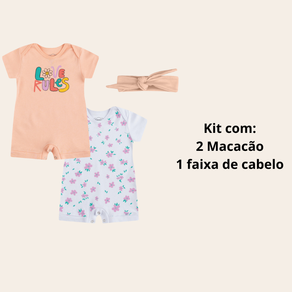 Macacão Verão Bebê Curto Kit Com 3Peças 100% algodão