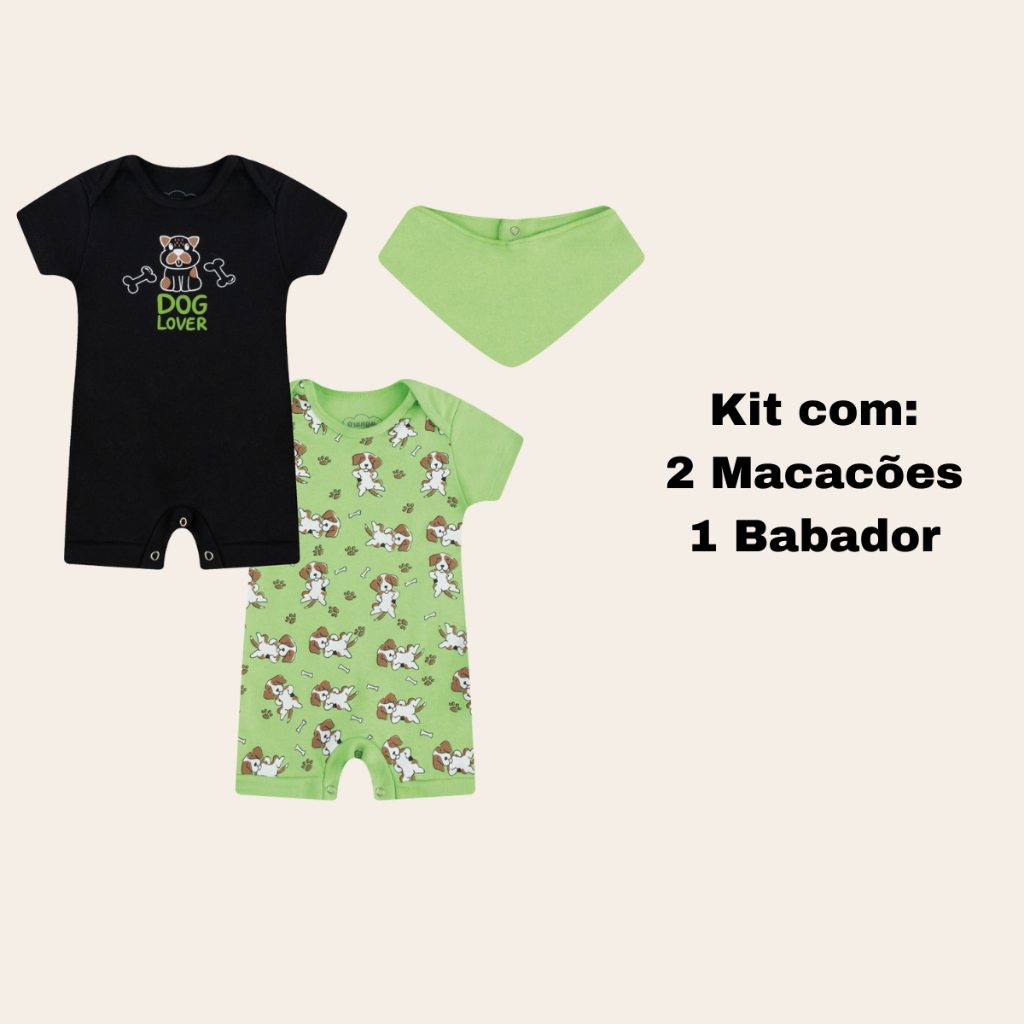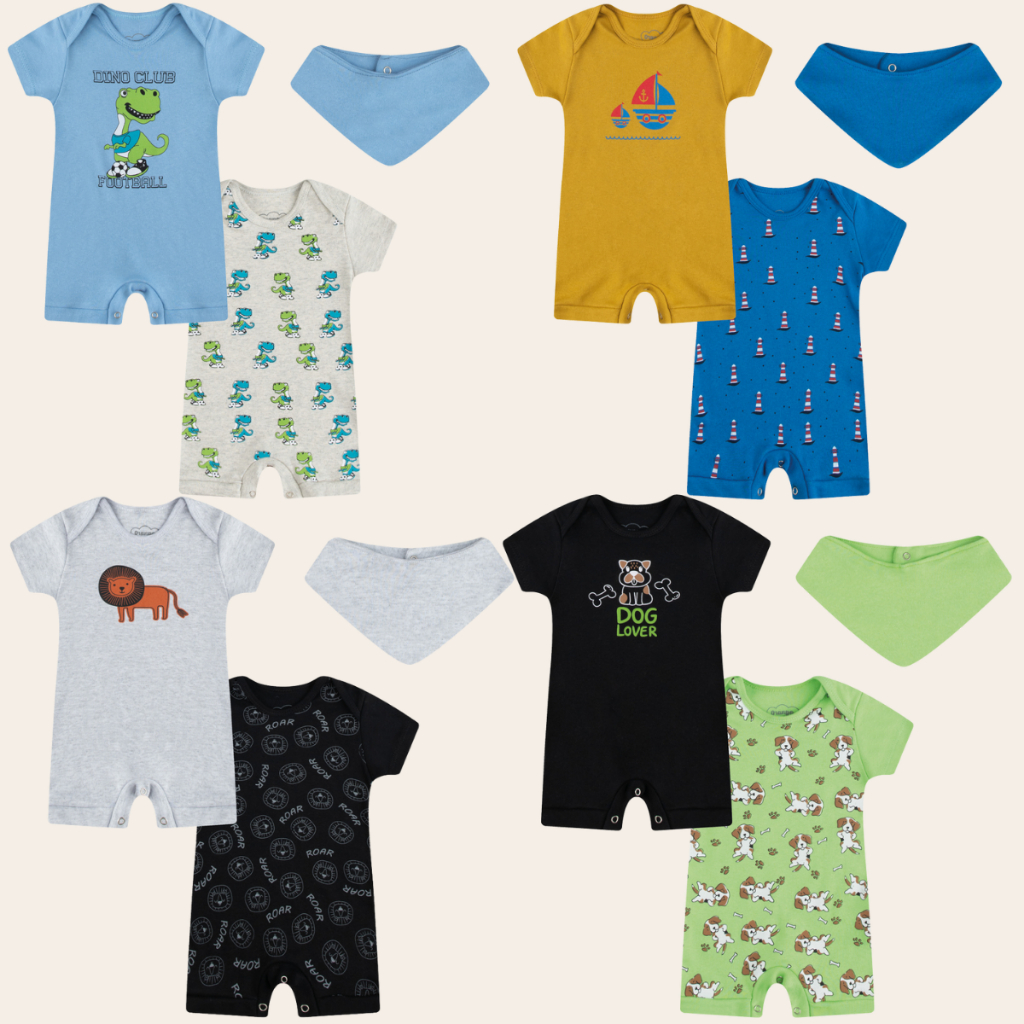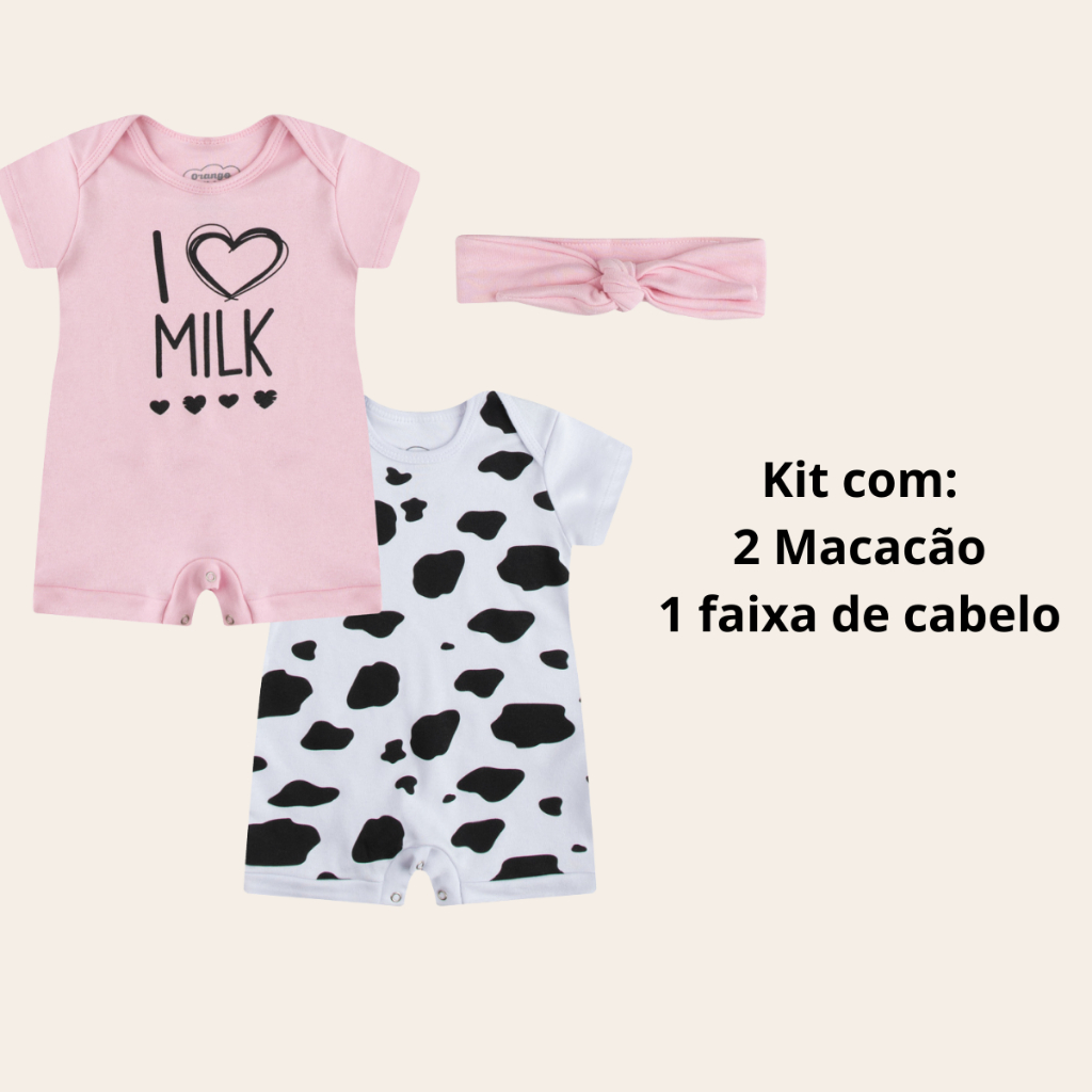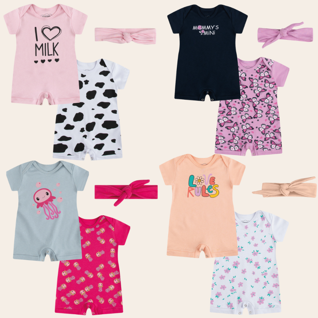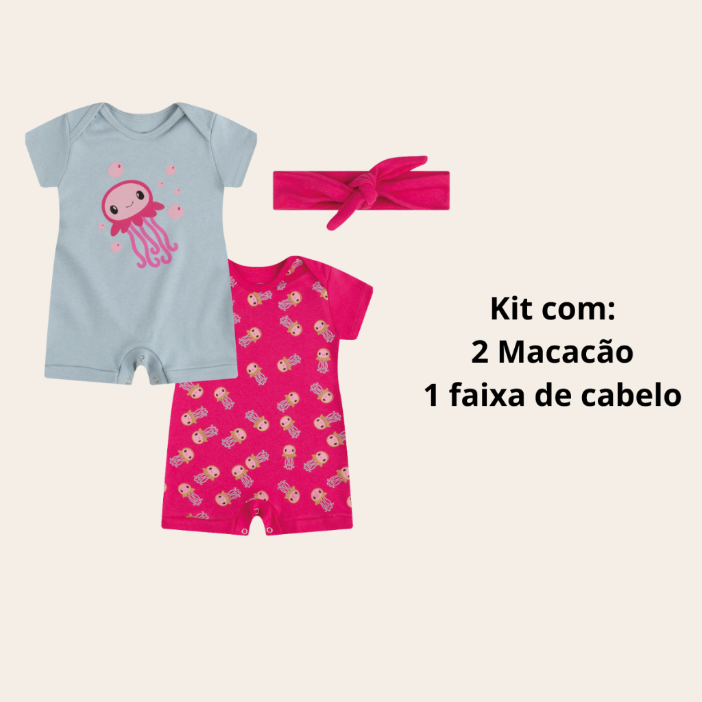 Macacão Verão Bebê Curto Kit Com 3Peças 100% algodão