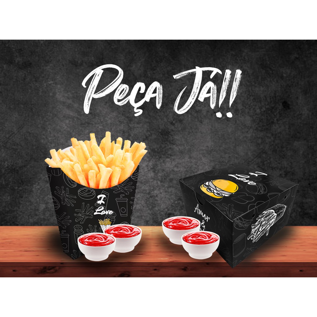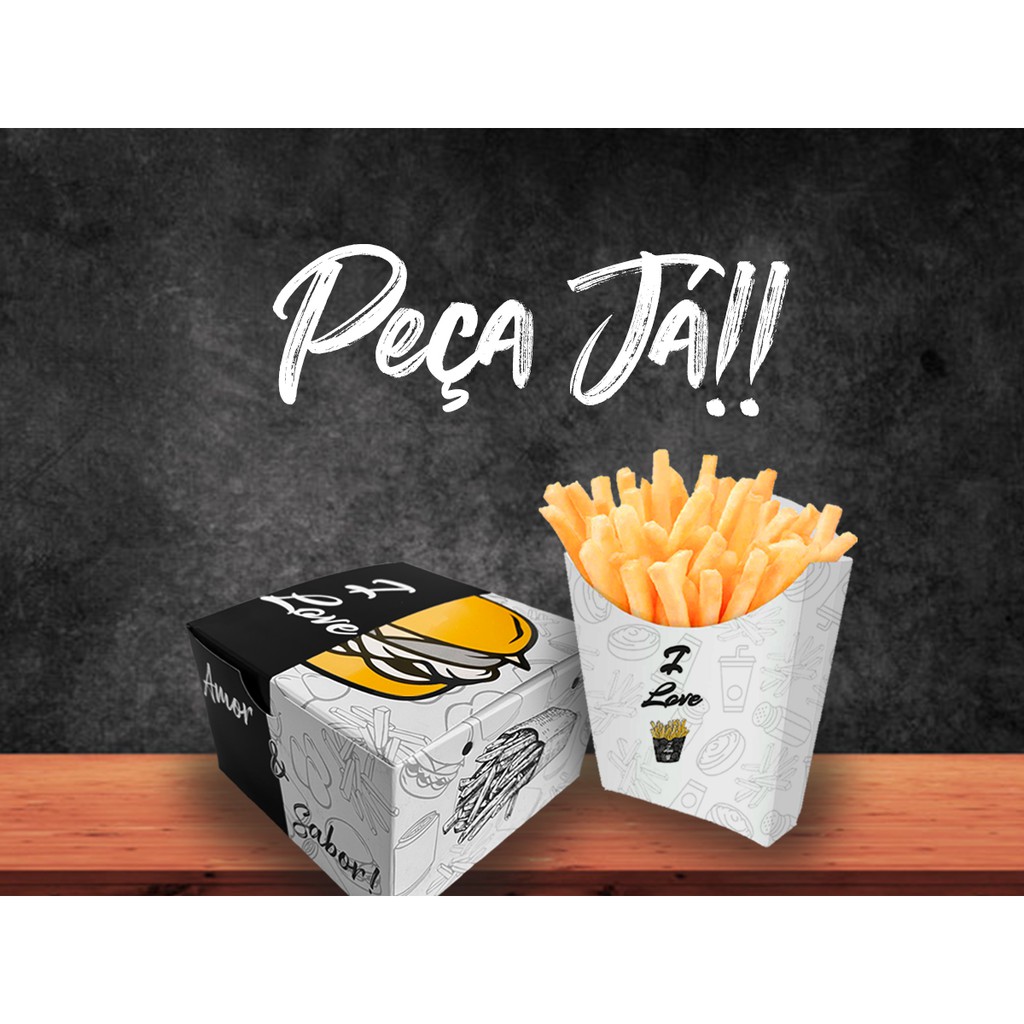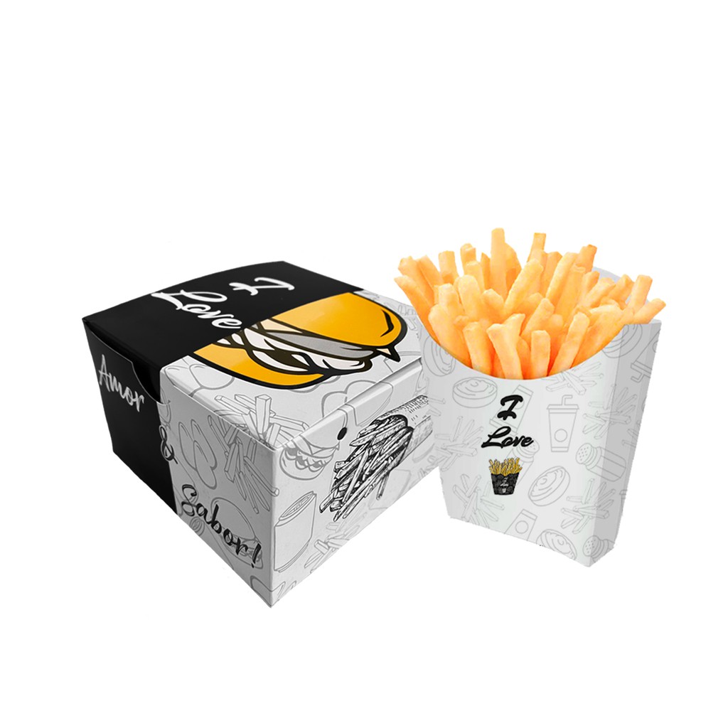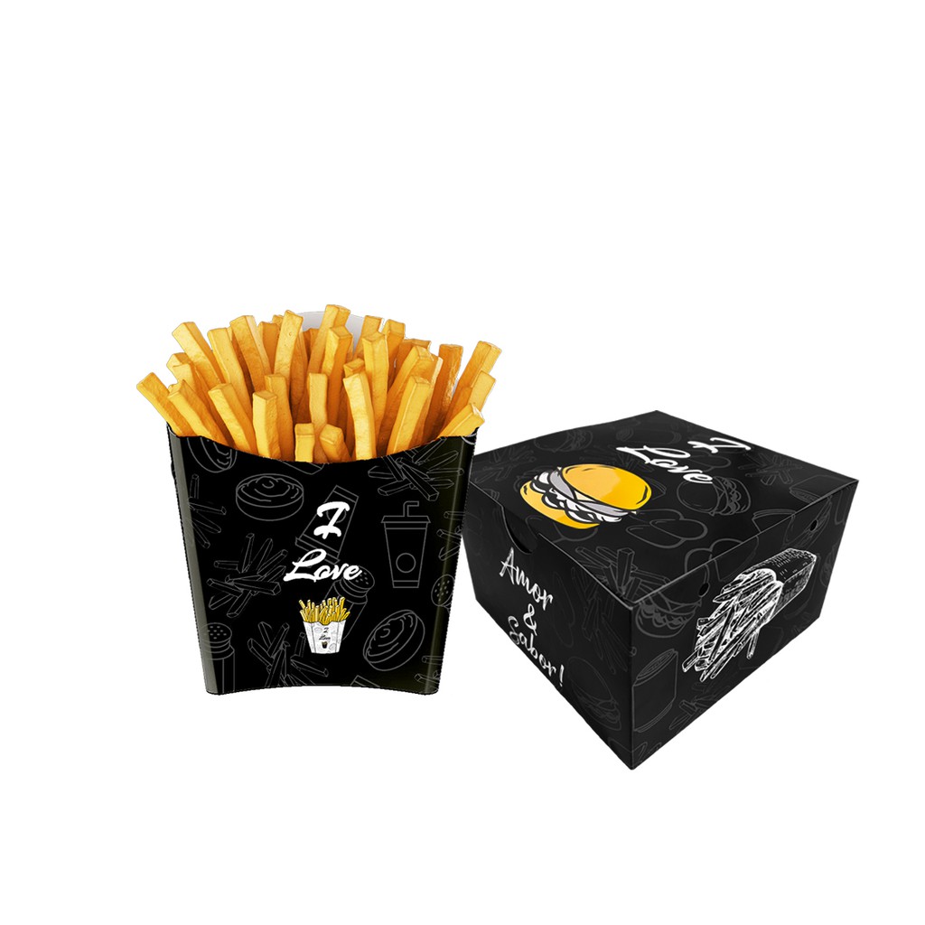 Kit Combo M Médio Caixa Batata Frita M Média + Caixa para Hambúrguer Artesanal - 100 de cada