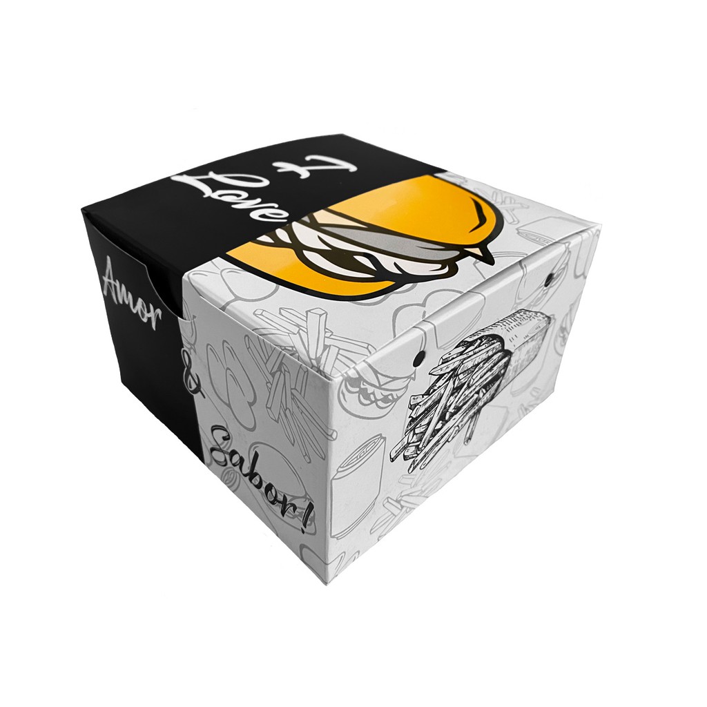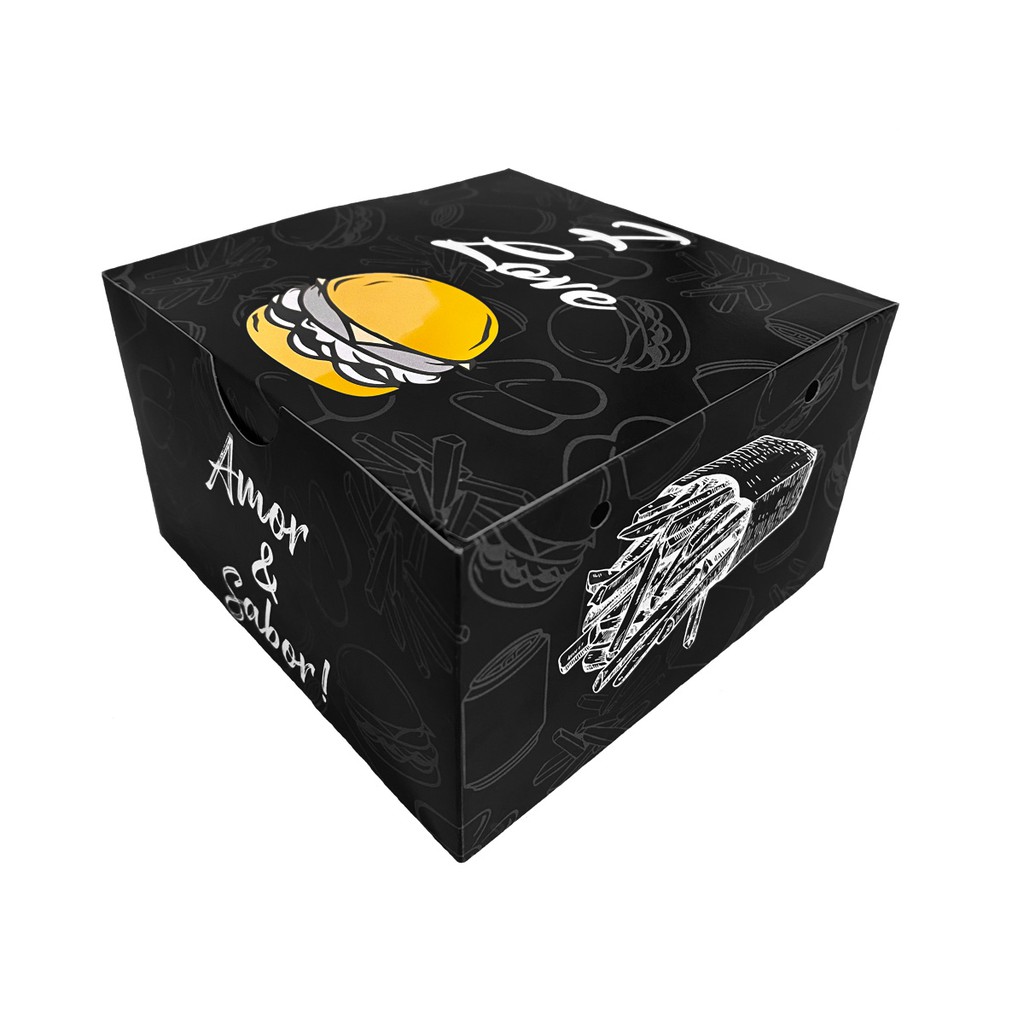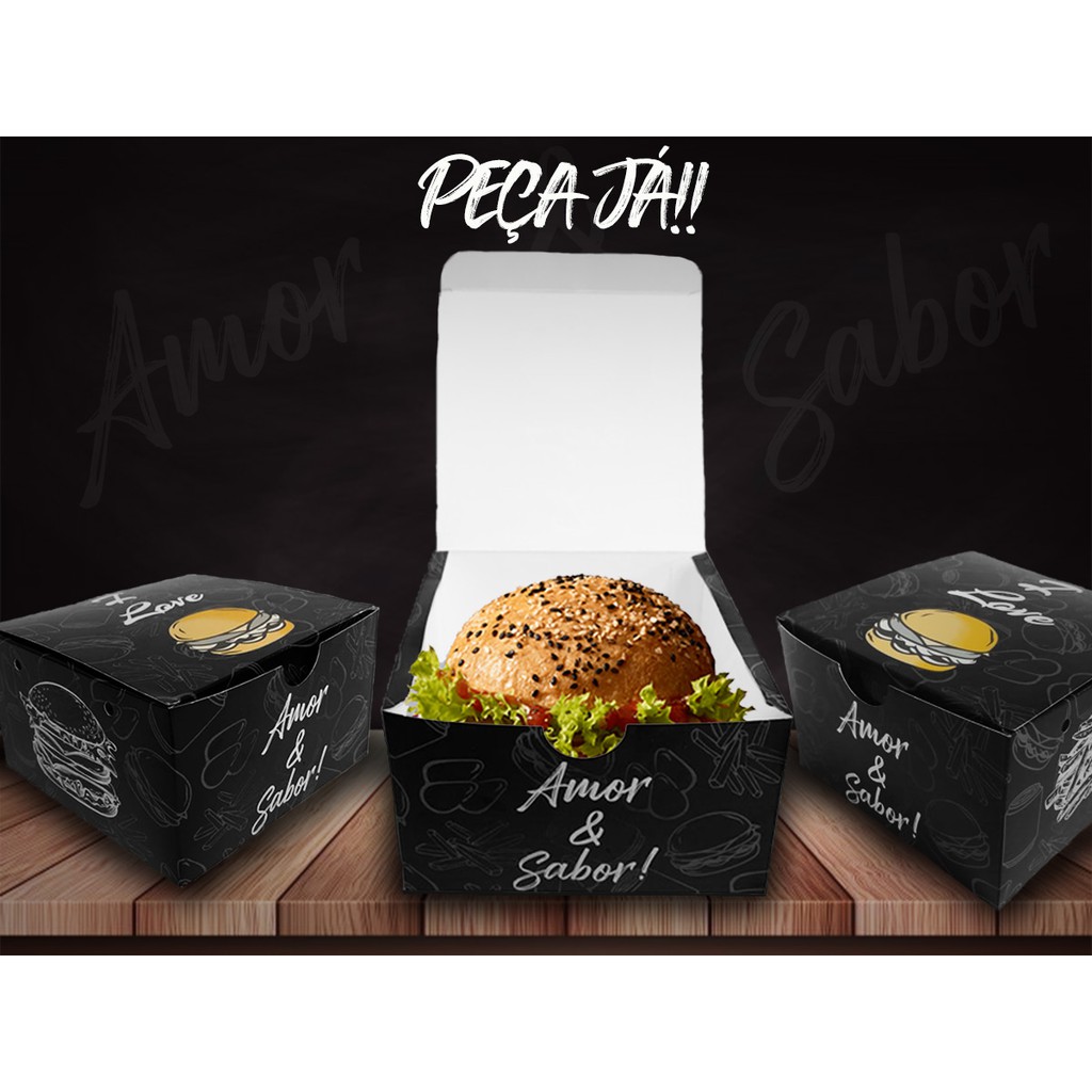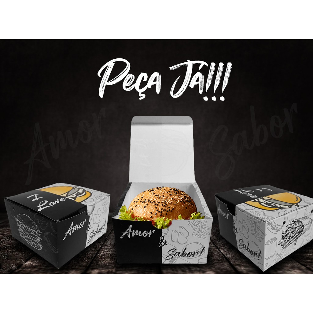 100 Caixa Embalagem Box Hambúrguer Artesanal Delivery Lanche Gourmet Preto Branco
