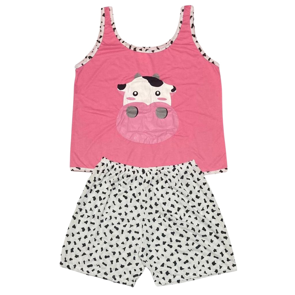 Pijama Adulto Feminino Regata Curto Verão Personagens Plus Size