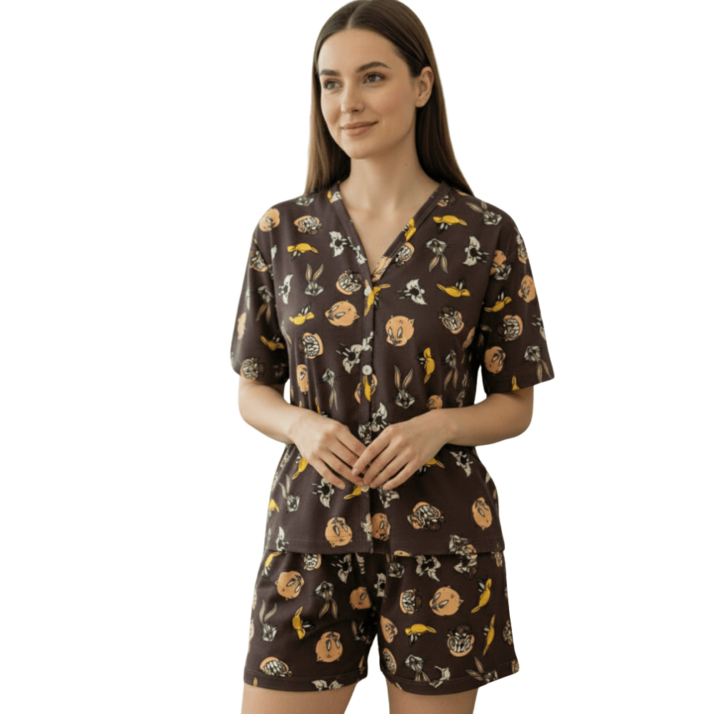 Pijama Feminino Americano Aberto Estampado