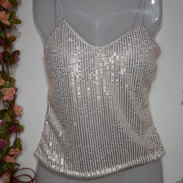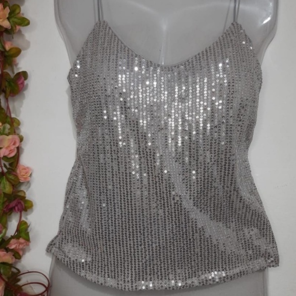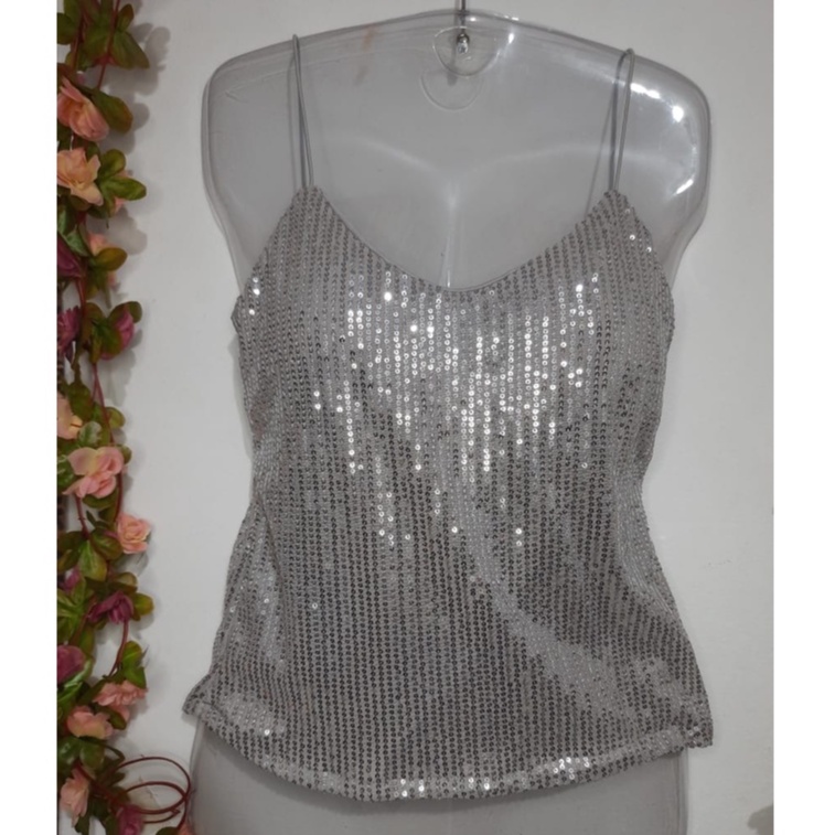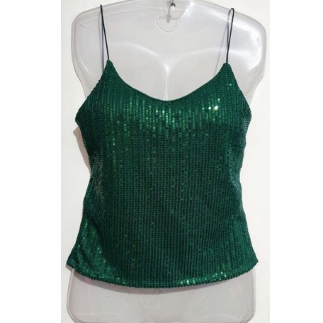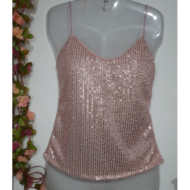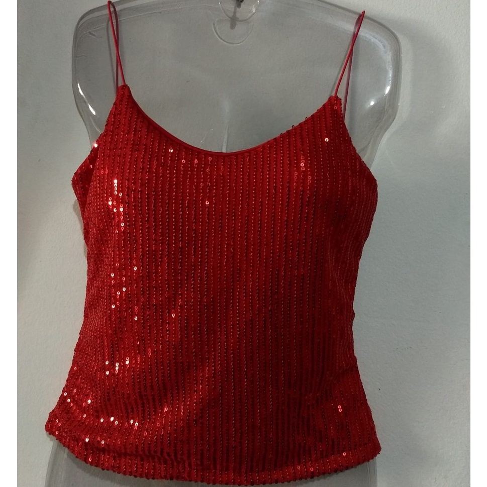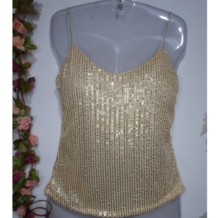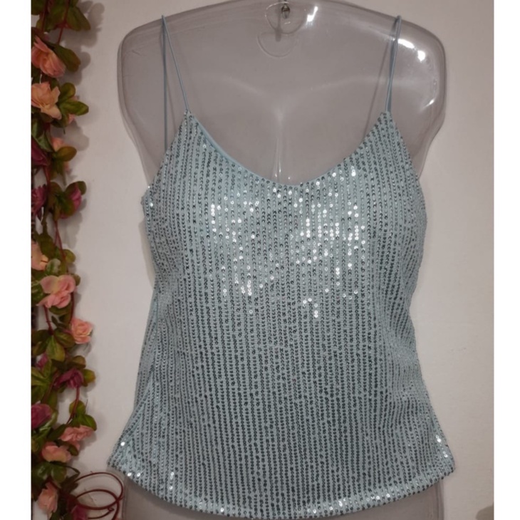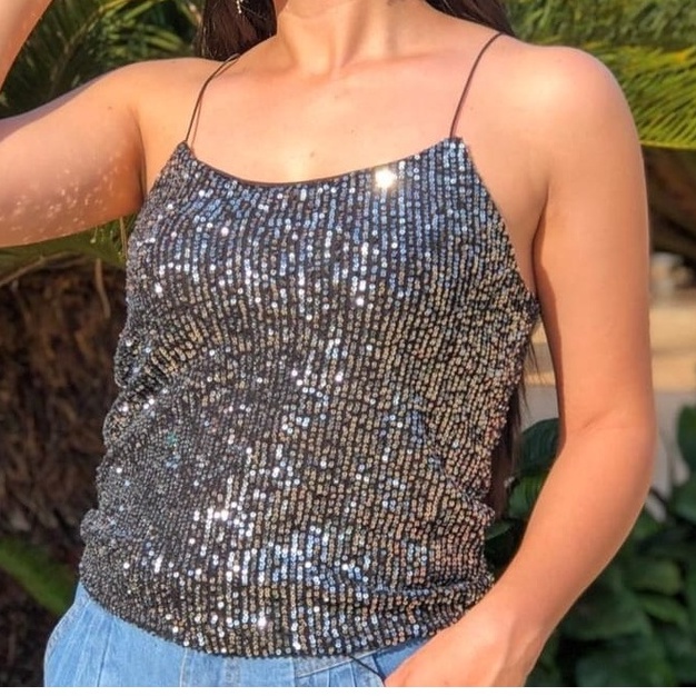 Blusa Paete Feminina Alça fina com bojo - Blusa Lantejoulas - Blusa com Bojo Verao 2023