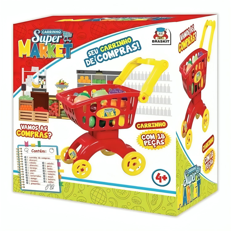 Brinquedo Carrinho Infantil De Compras Super Market Com Frutas 870-3 - Braskit