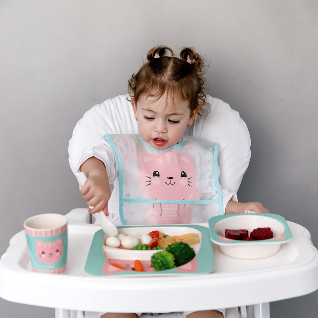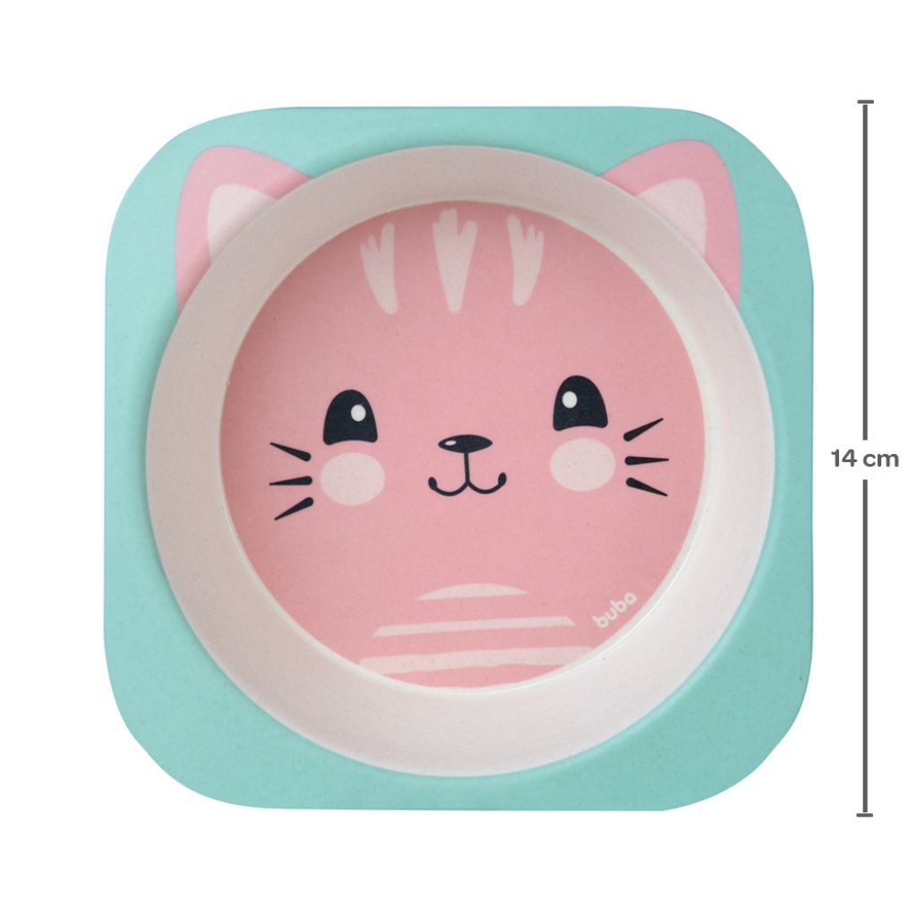 Kit Refeição Infantil Bambu Gatinho Rosa 13209 - Buba