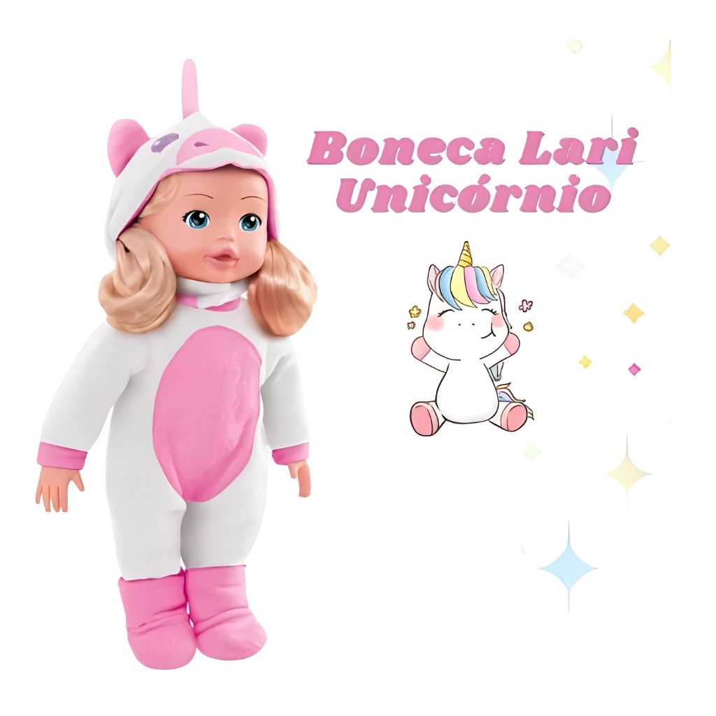 Boneca De Vinil Lari and Me Unicórnio Branco E Rosa 5808 - Roma