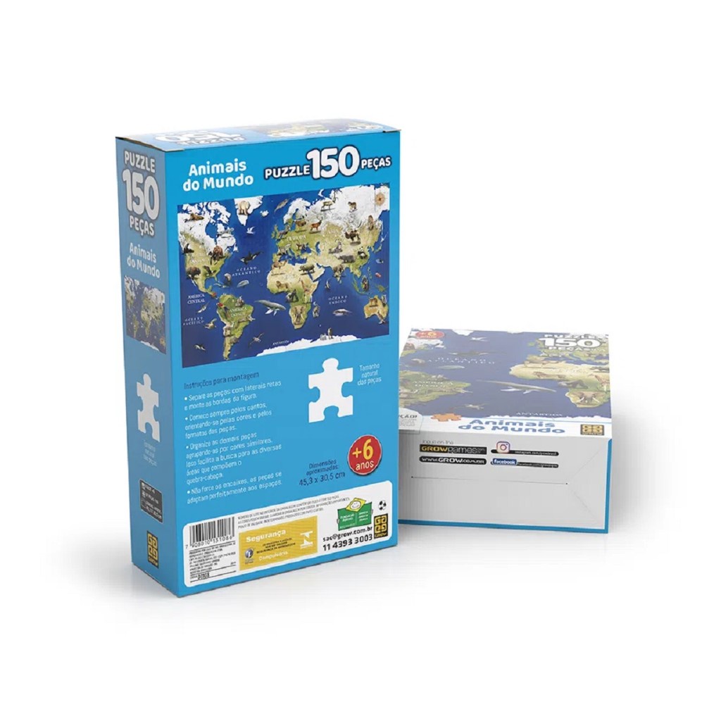 Quebra Cabeça 150 Peças Animais Do Mundo 03108 Grow