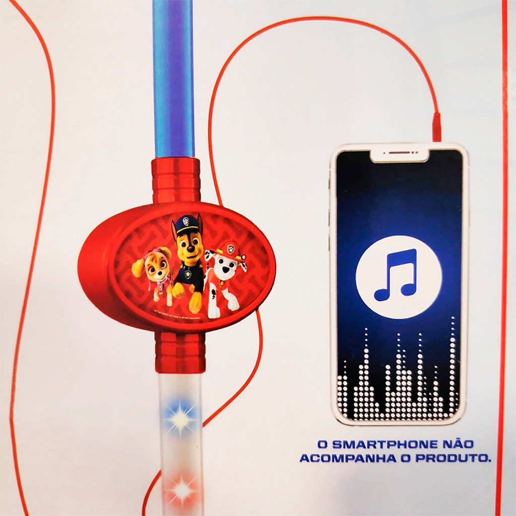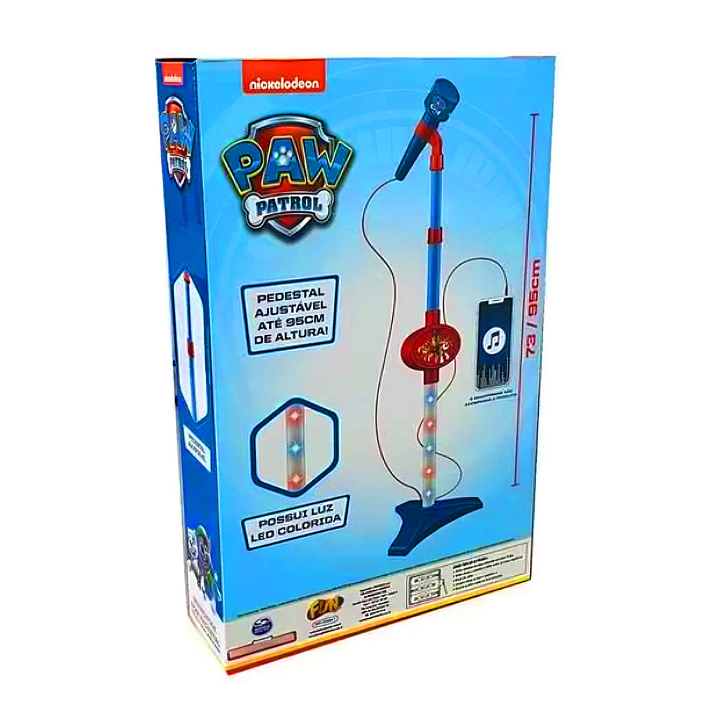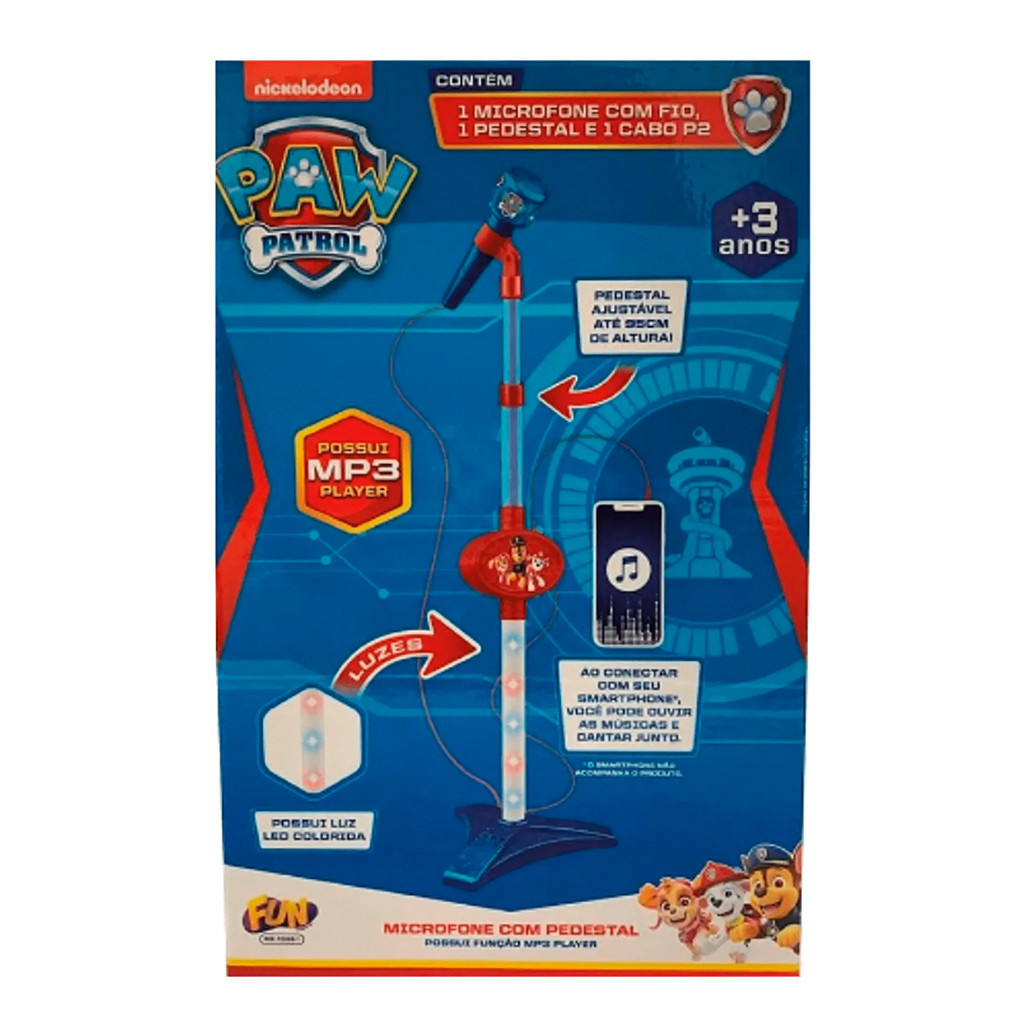 Microfone Infantil Patrulha Canina Com Luz Pedestal Ajustavel E MP3 F00891 - Fun