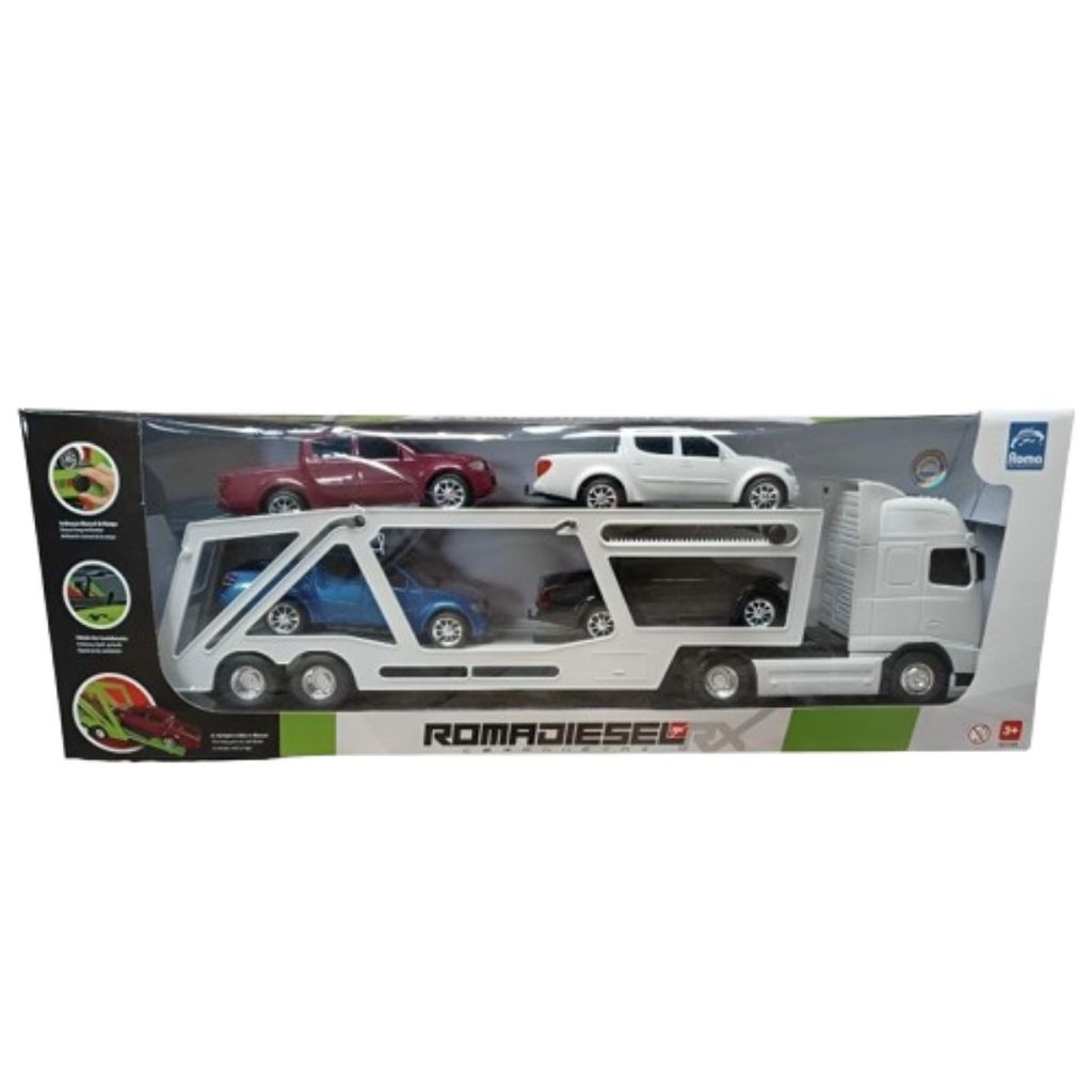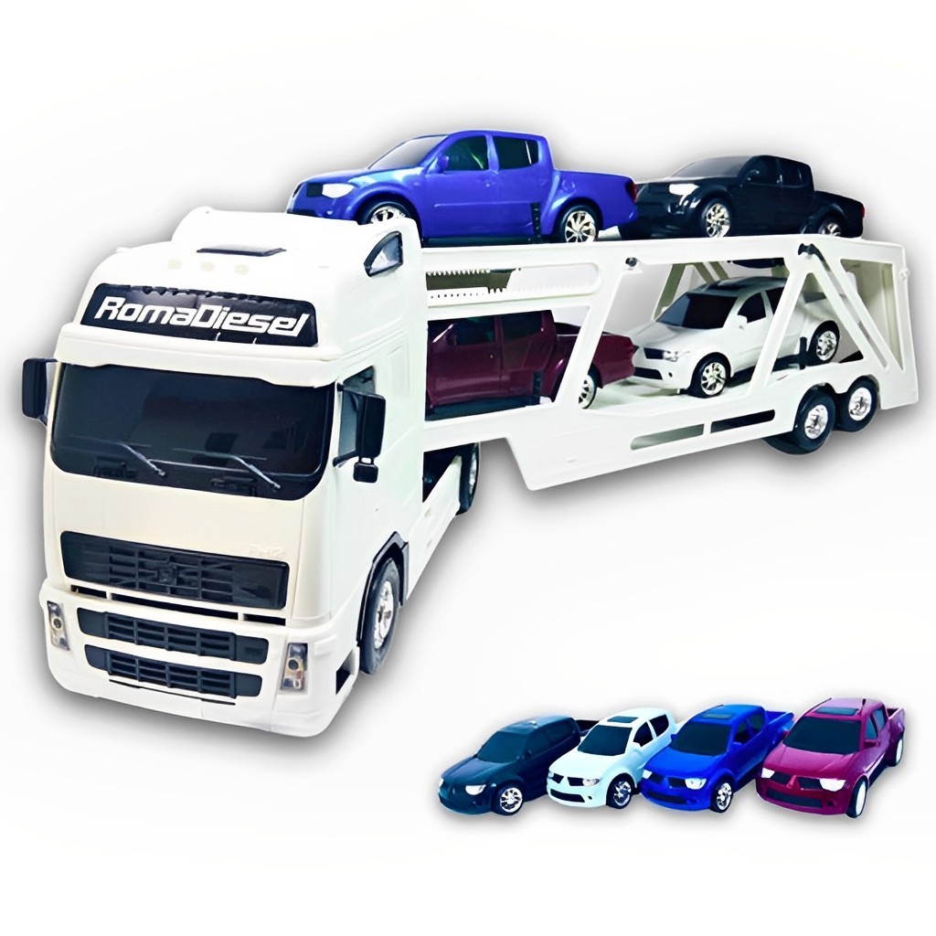 Brinquedo Caminhão Carreta Cegonheira Diesel Rx Branco 1308 Roma