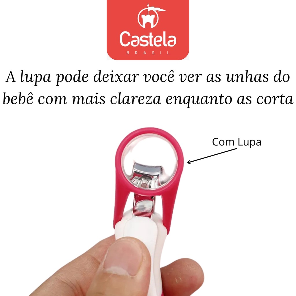 Cortador de Unhas Infantil Bebe Rosa C/ Lupa - Castela