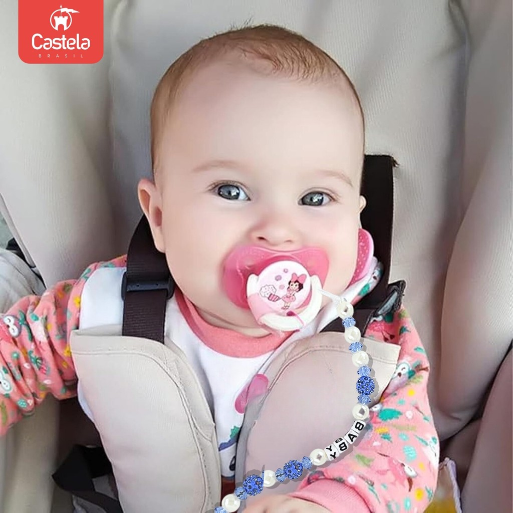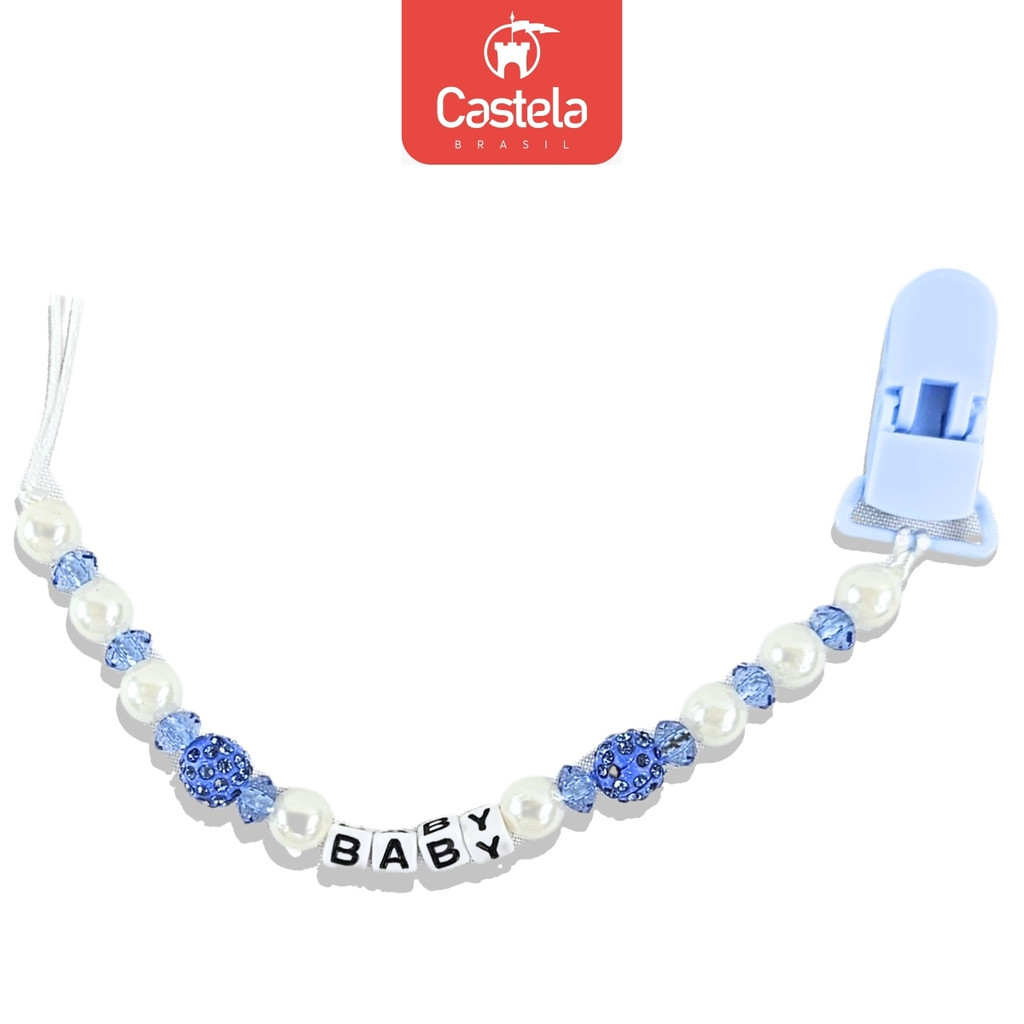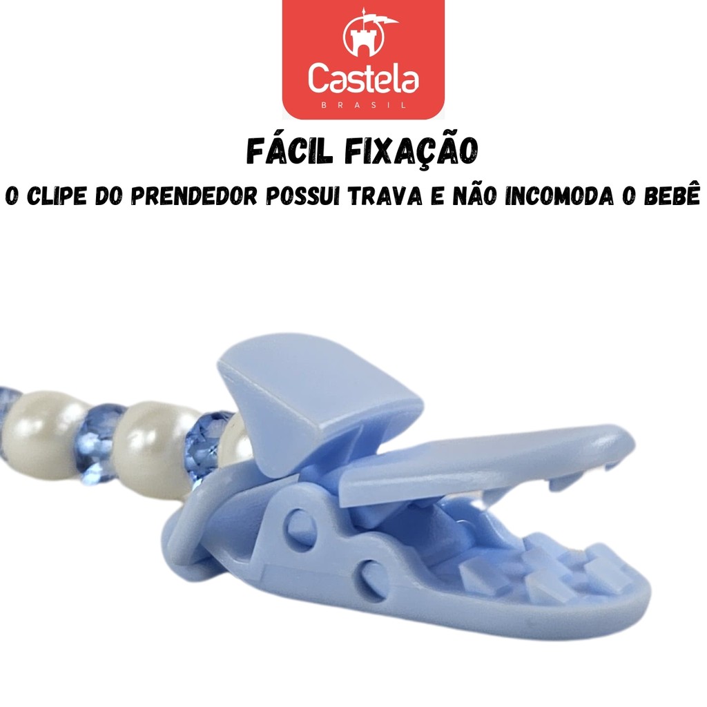 Prendedor de Chupeta Baby Azul Perola Trava Clipe Livre BPA - Castela