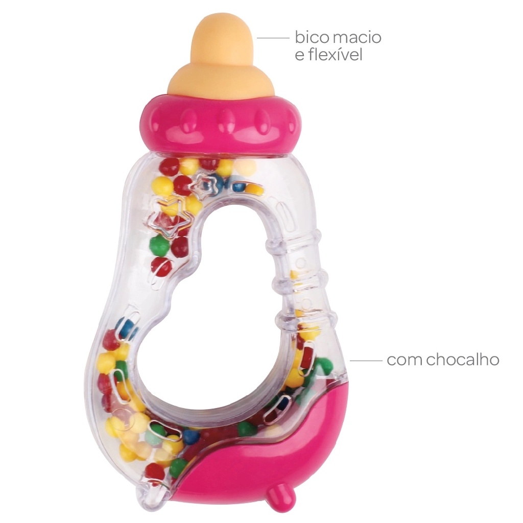 Mordedor E Chocalho Mamadeira Rosa - Buba