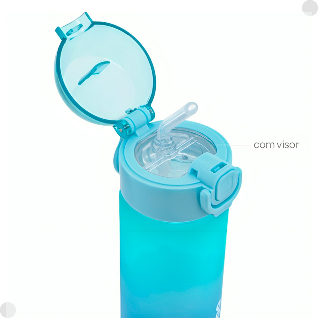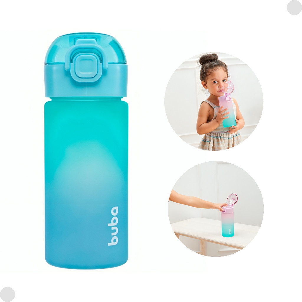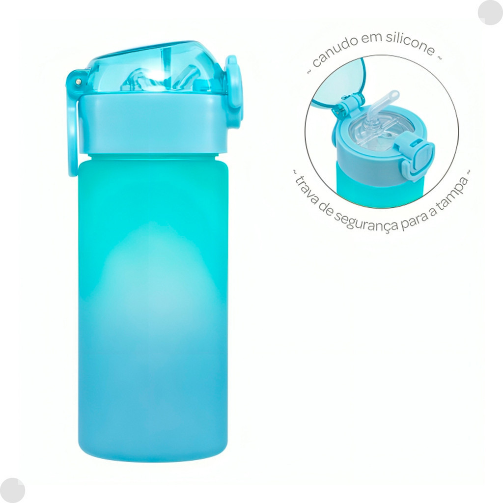 Garrafa Degradê Azul Infantil 450ml C/ Canudo 18106 - Buba