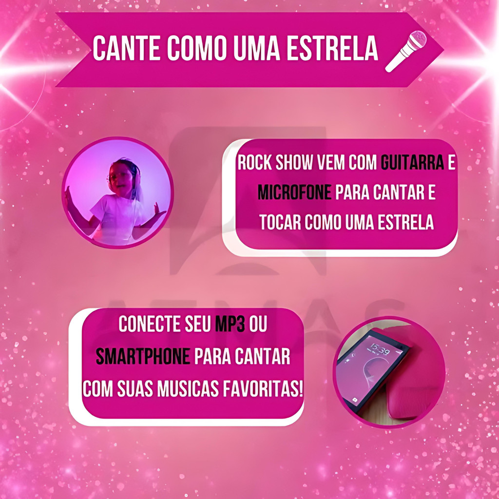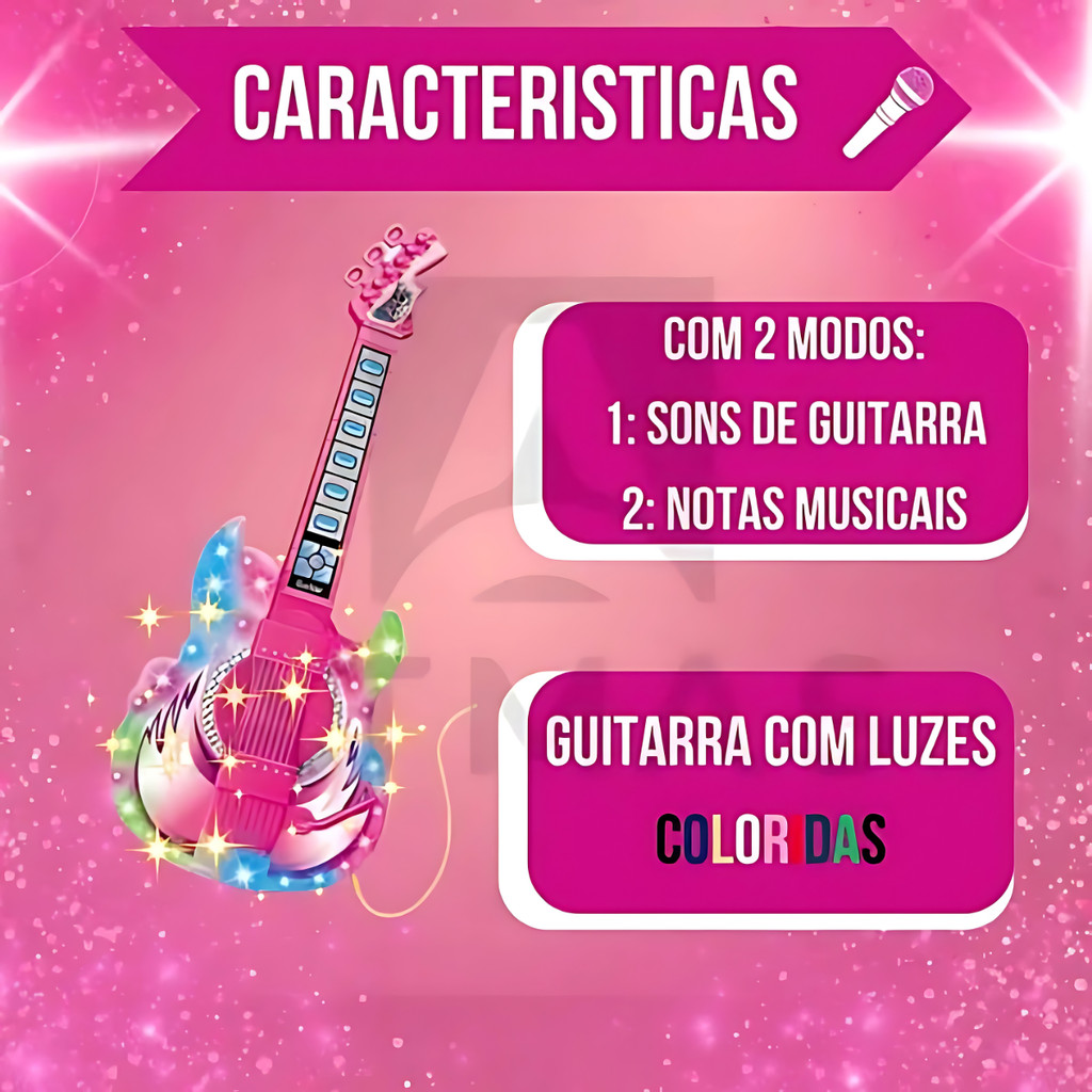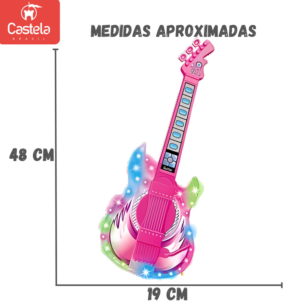 Guitarra Musical Infantil Rosa Com Microfone E Luz Castela