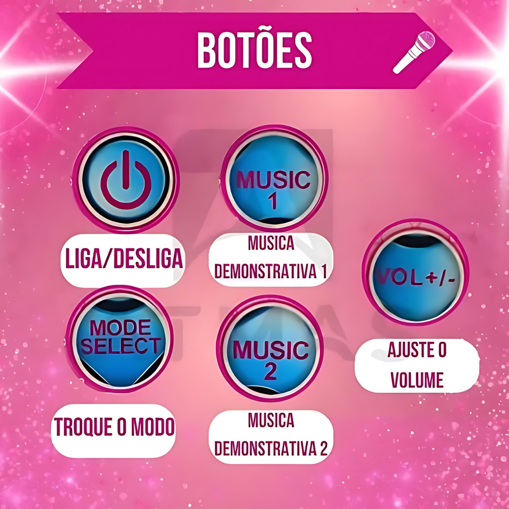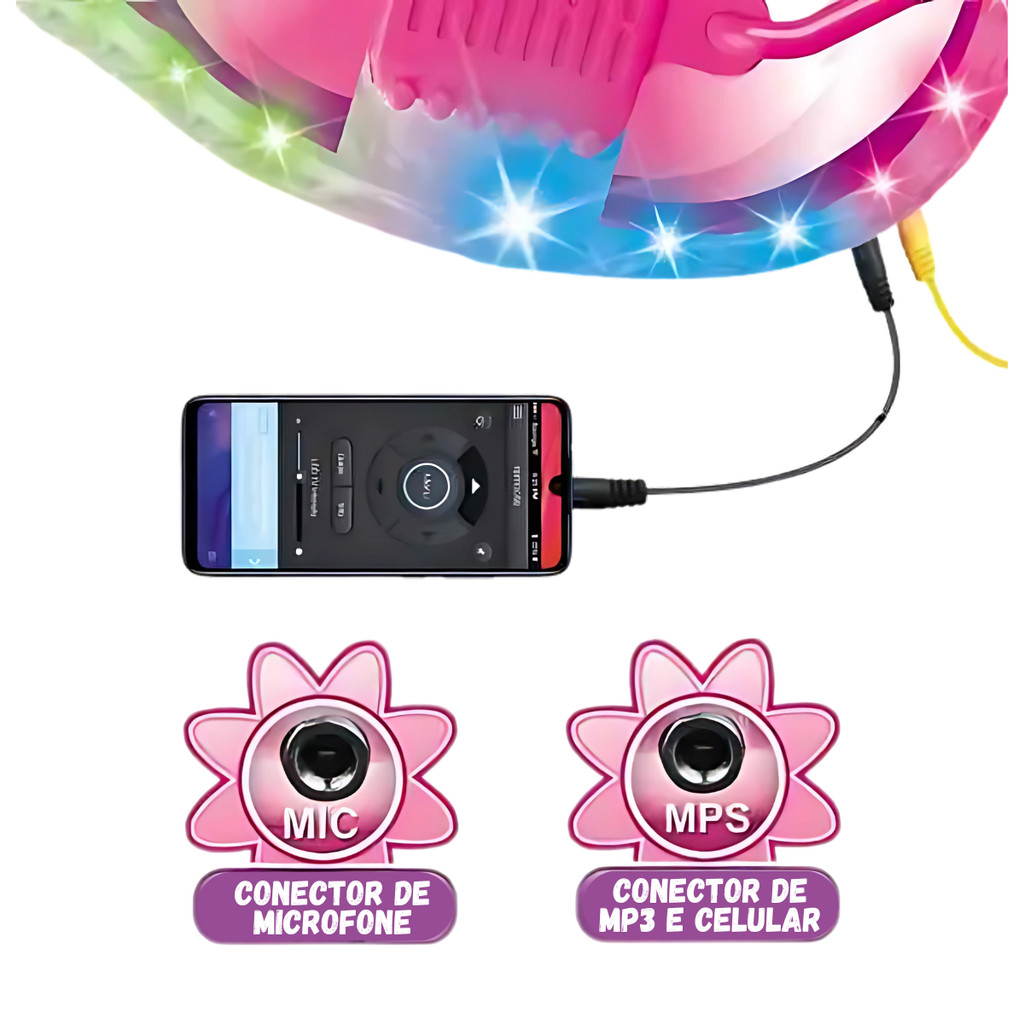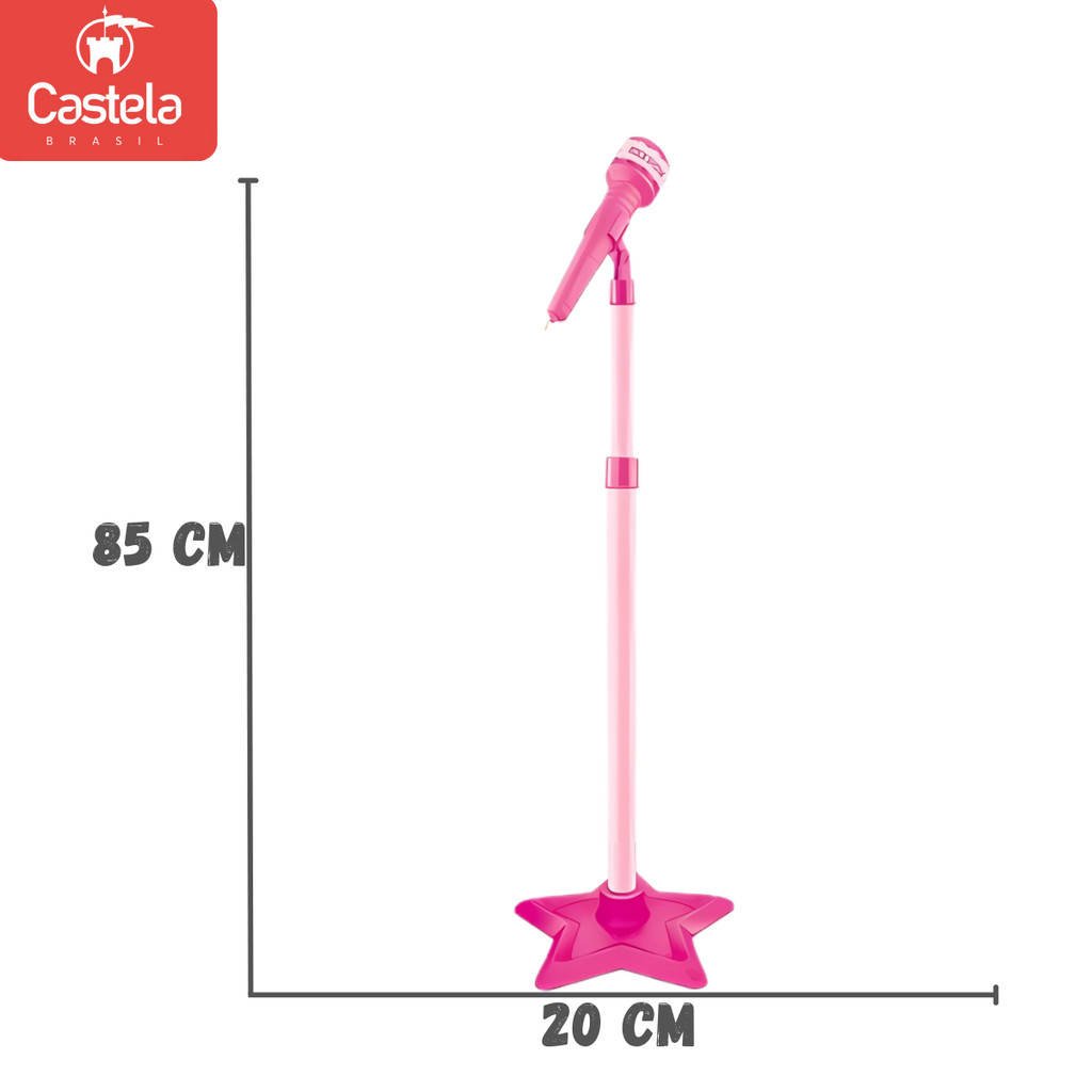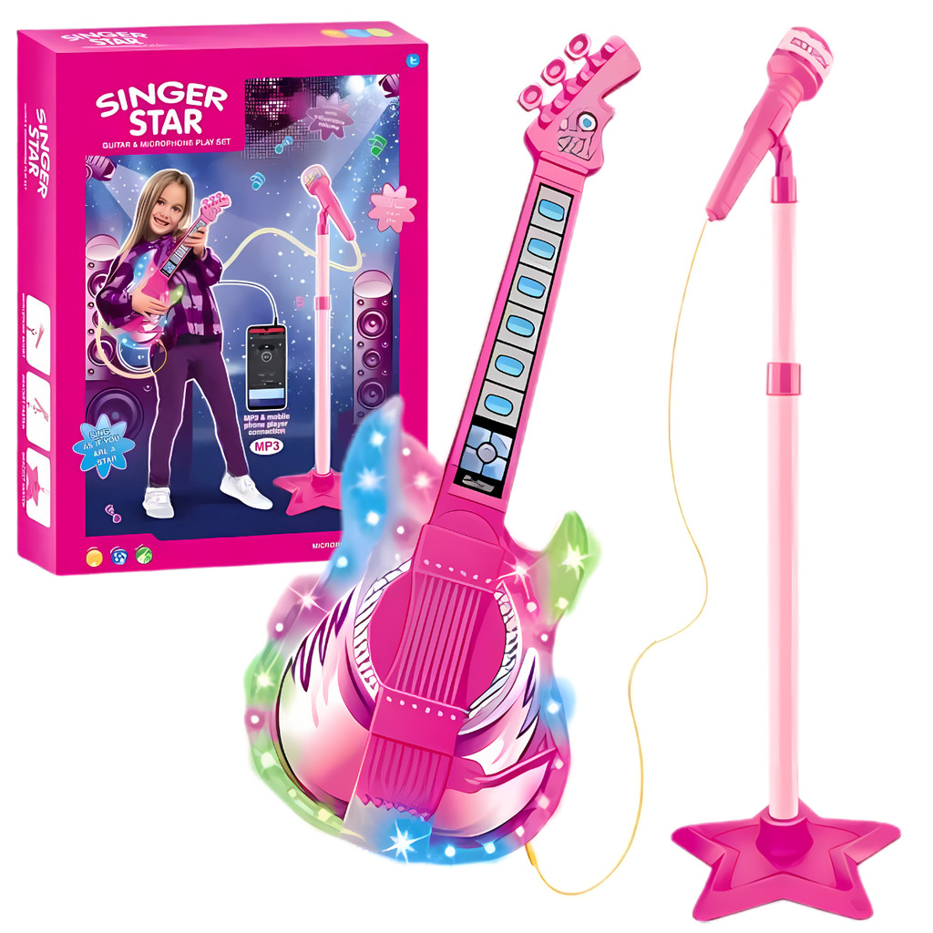 Guitarra Musical Infantil Rosa Com Microfone E Luz Castela