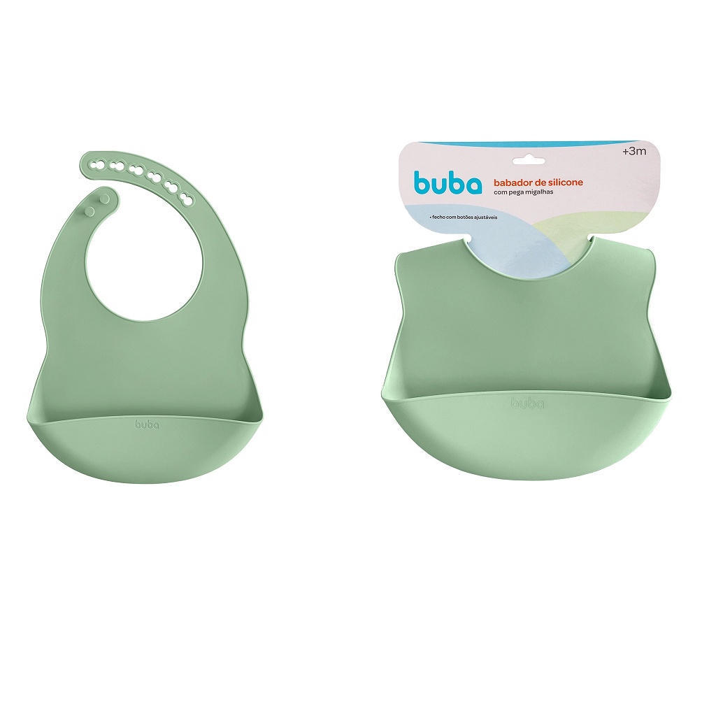Babador de Silicone com Pega Migalhas Verde 15641 - Buba