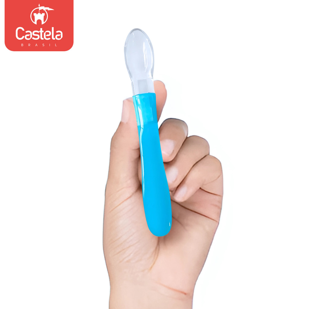 Colher Infantil Anatômica Papinha Azul Bebê Silicone - Castela
