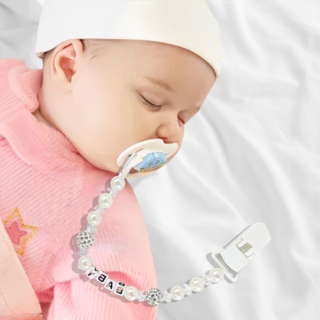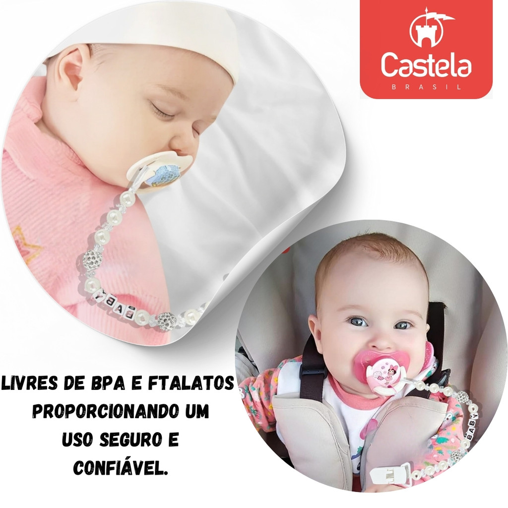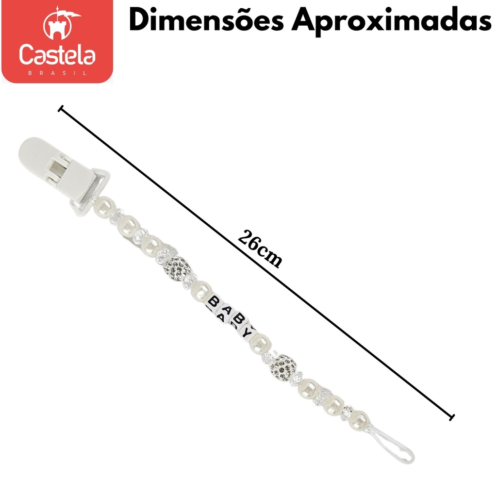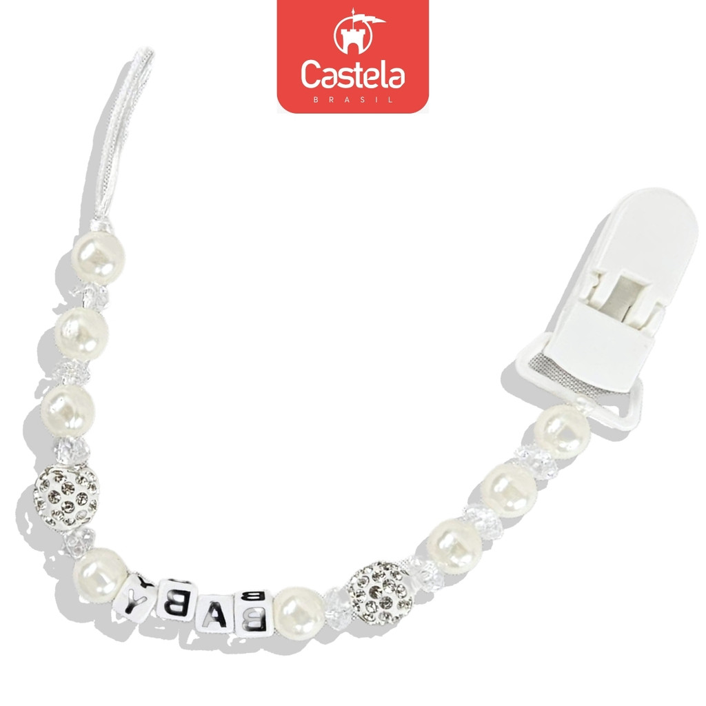Prendedor de Chupeta Baby Branco Perola Trava Clipe Livre BPA - Castela