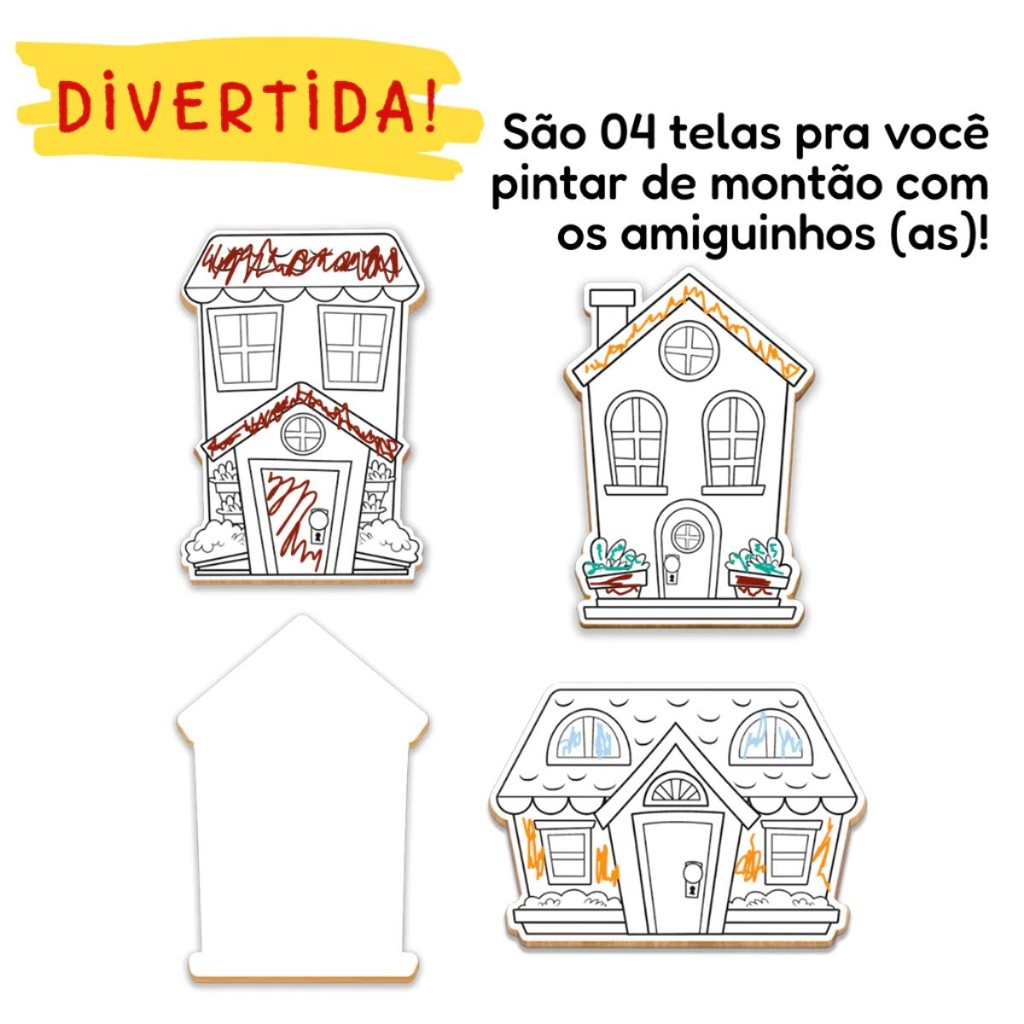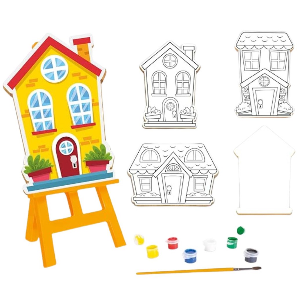 Brinquedo Pinturinha Casinhas Tela, Tintas e Cavalete 0241 - Nig Brinquedos