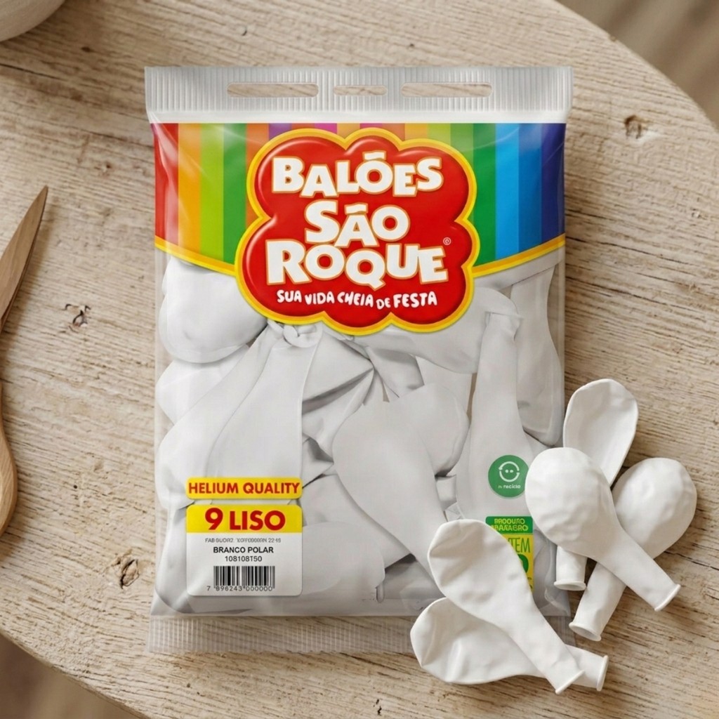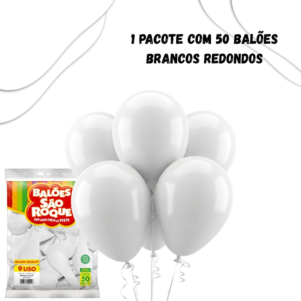 Balões 09 Liso Com 50un Bexigas Branco Polar 108106150 - São Roque