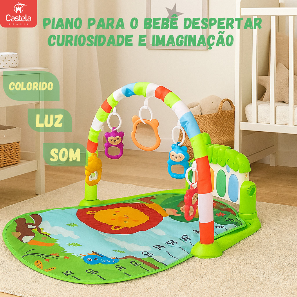 Tapete De Atividades Infantil Verde Safari Piano Musical - Castela Brasil
