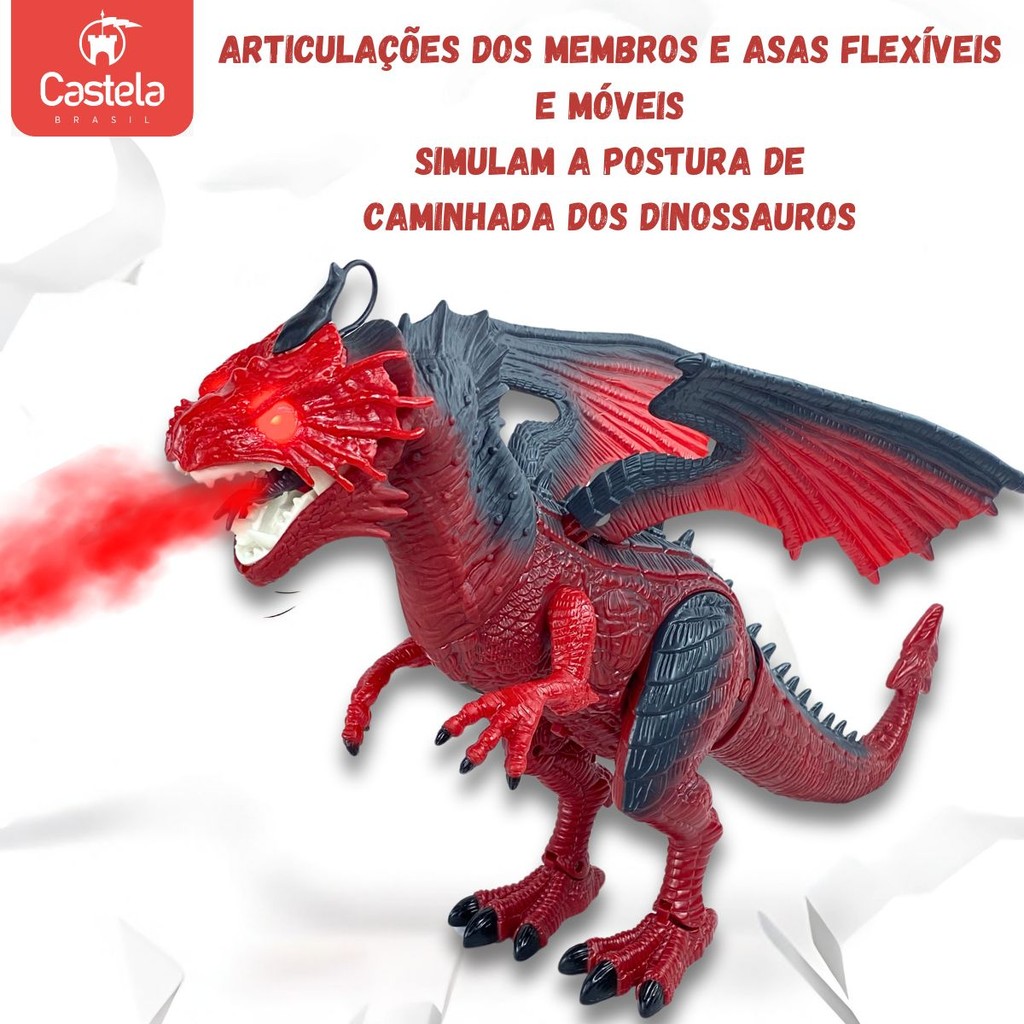 Dragão Vermelho Controle Remoto Anda C/ Luz Som E Solta Fumaça - Castela