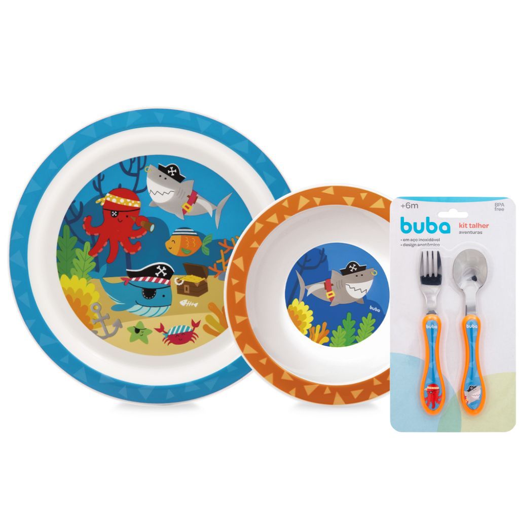 Kit Pratinho Tigela Bowl E Talheres Aventuras Pirata Buba