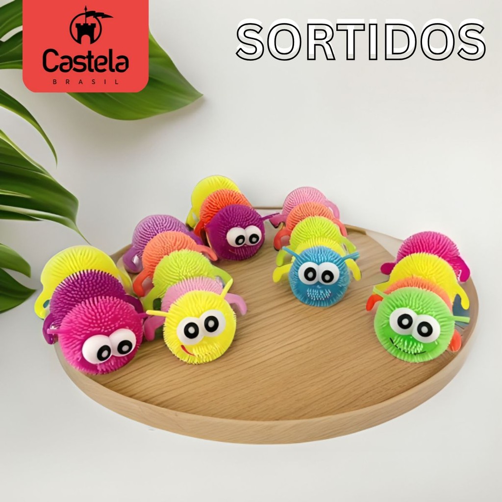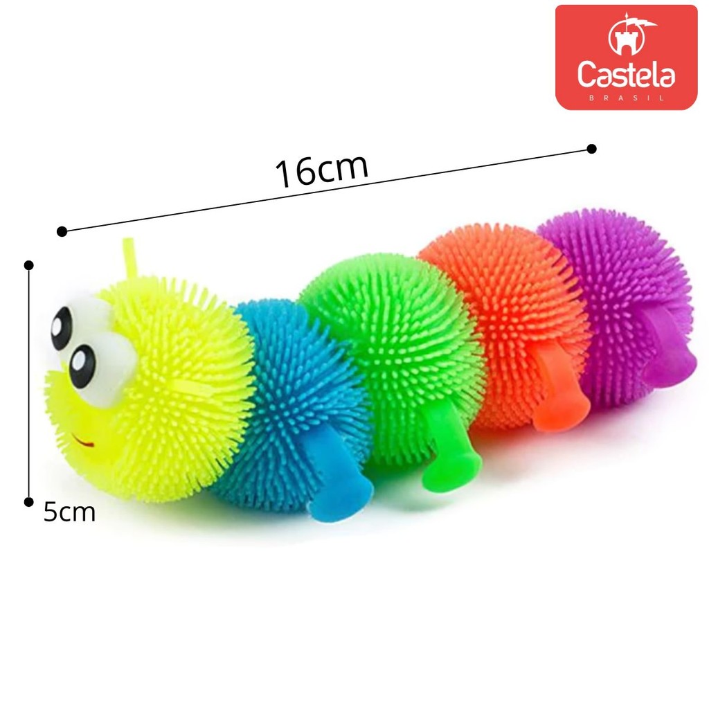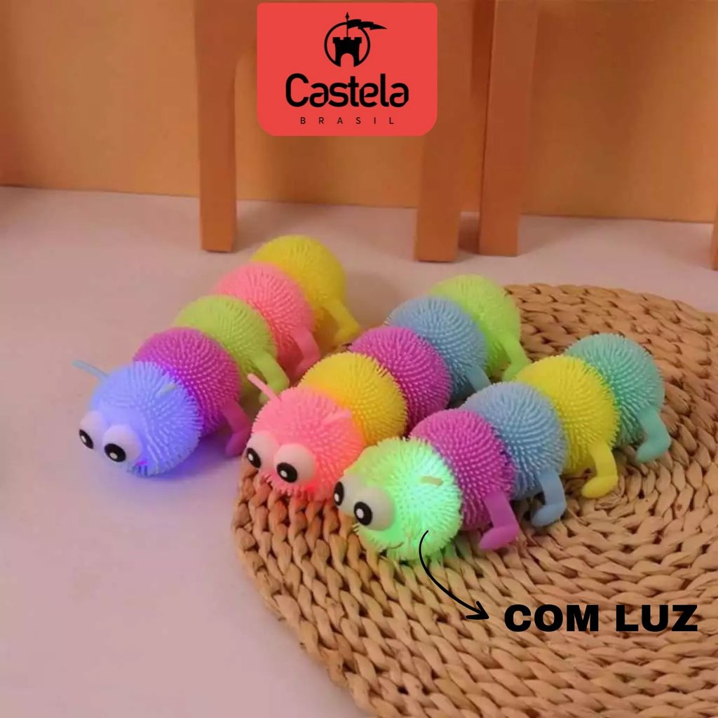 Brinquedo Divertido Centopeia Colorida Estica e Aperta Lagarta Com Luz - Castela