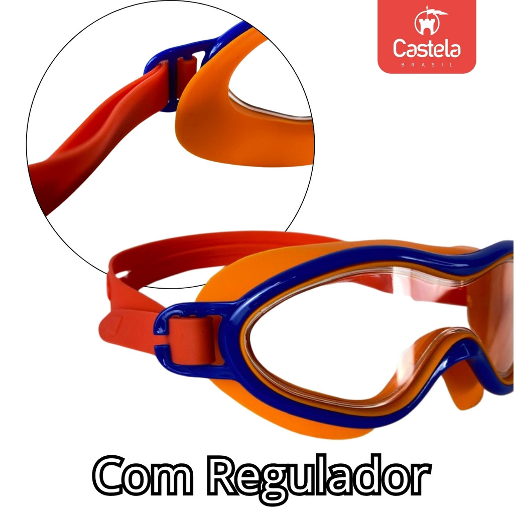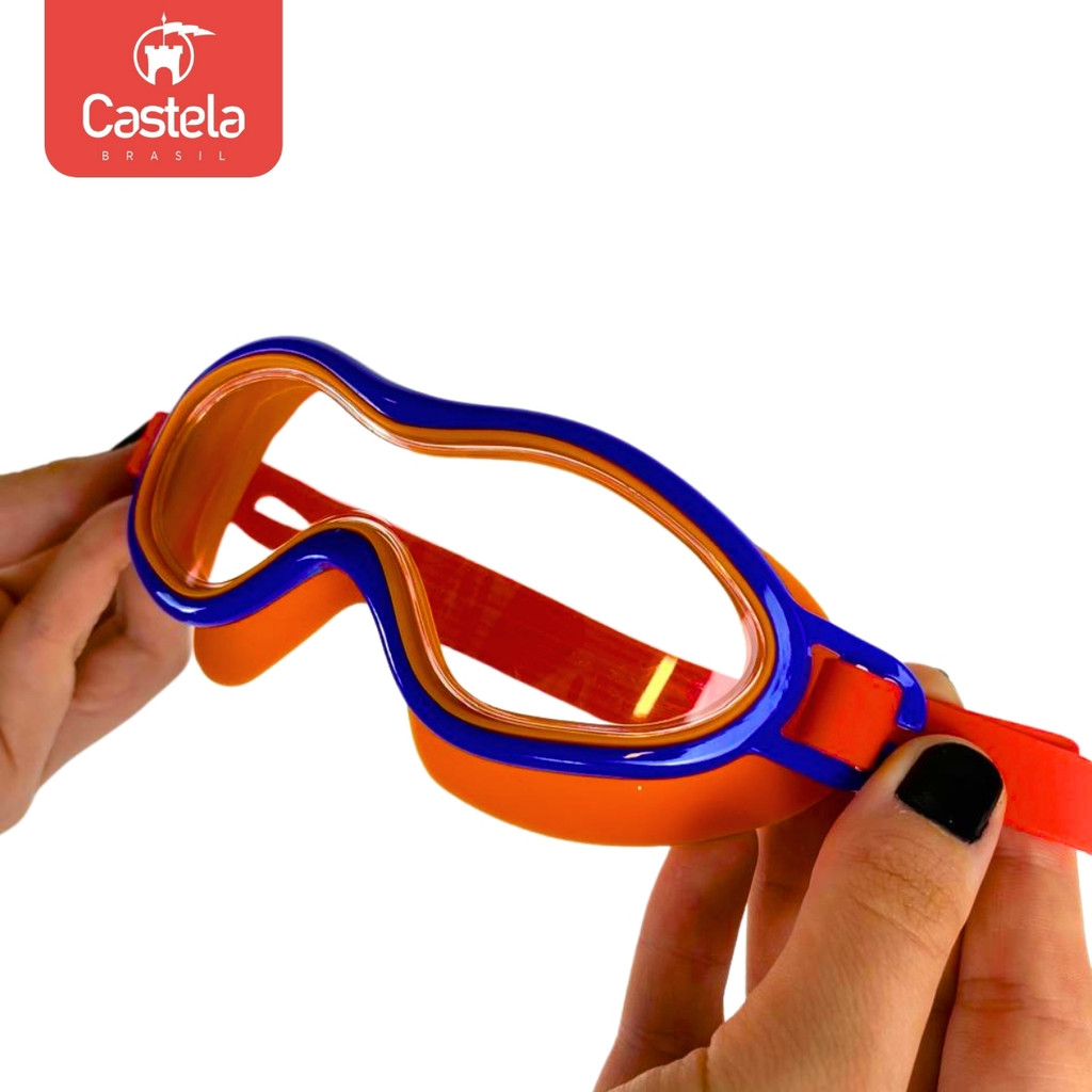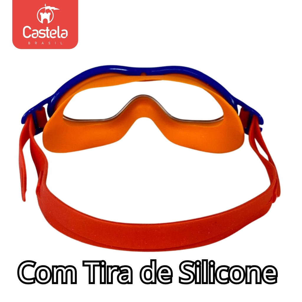 Óculos Silicone de Natação Infantil Laranja e Azul - Castela