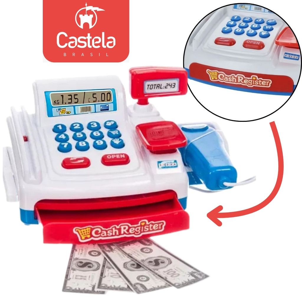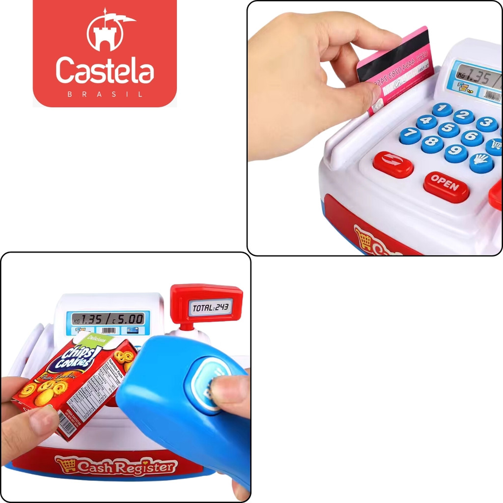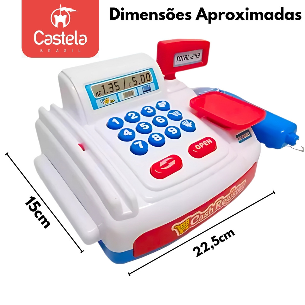 Caixa Registradora Infantil Com Som Luz E 20 Acessórios Completa Mini Mercadinho - Castela
