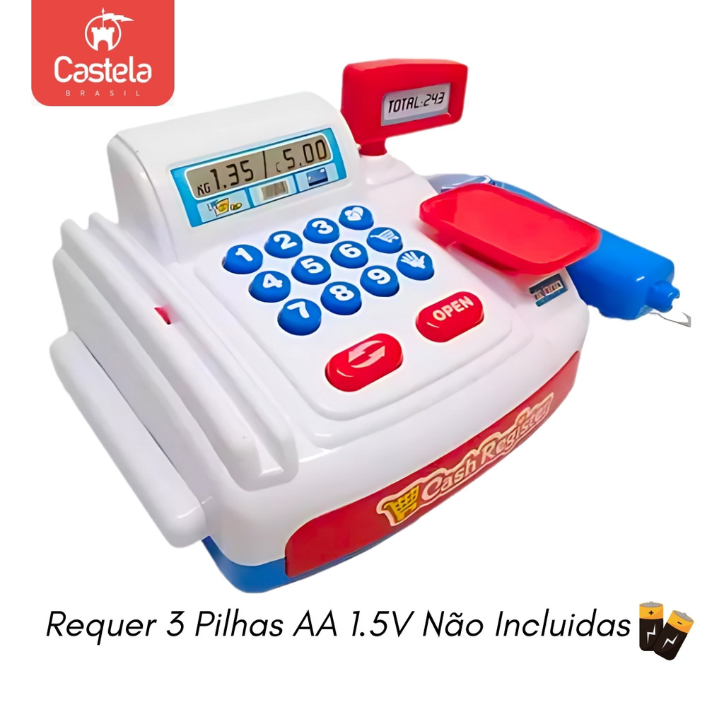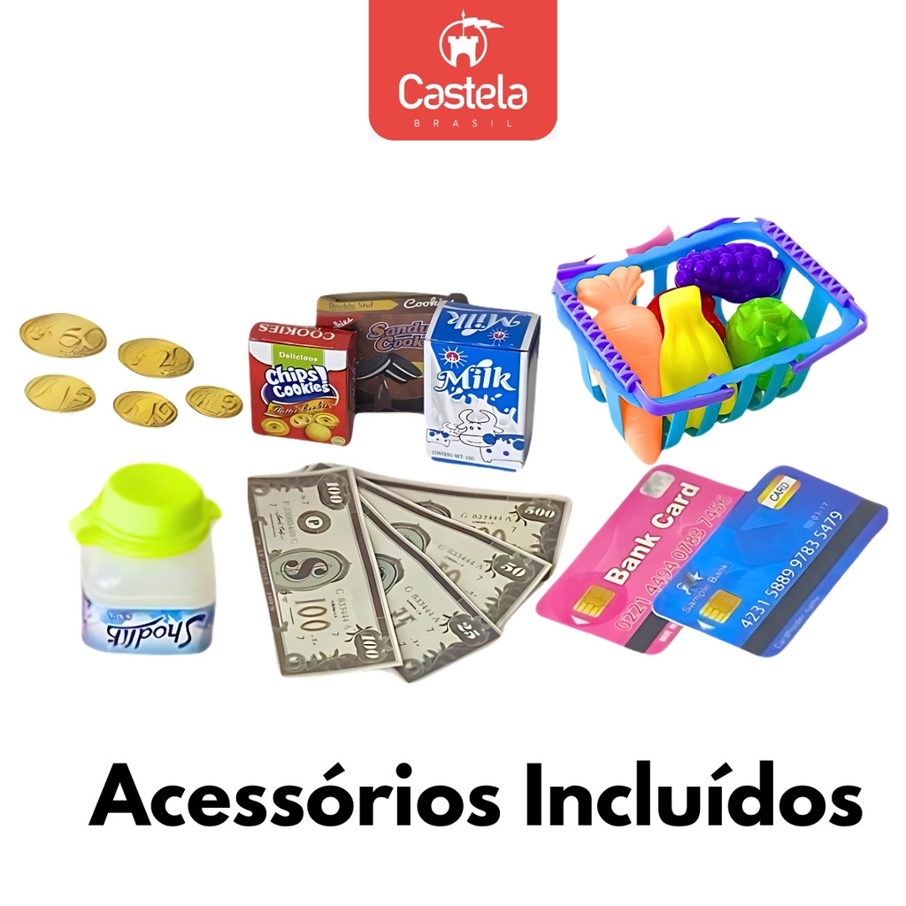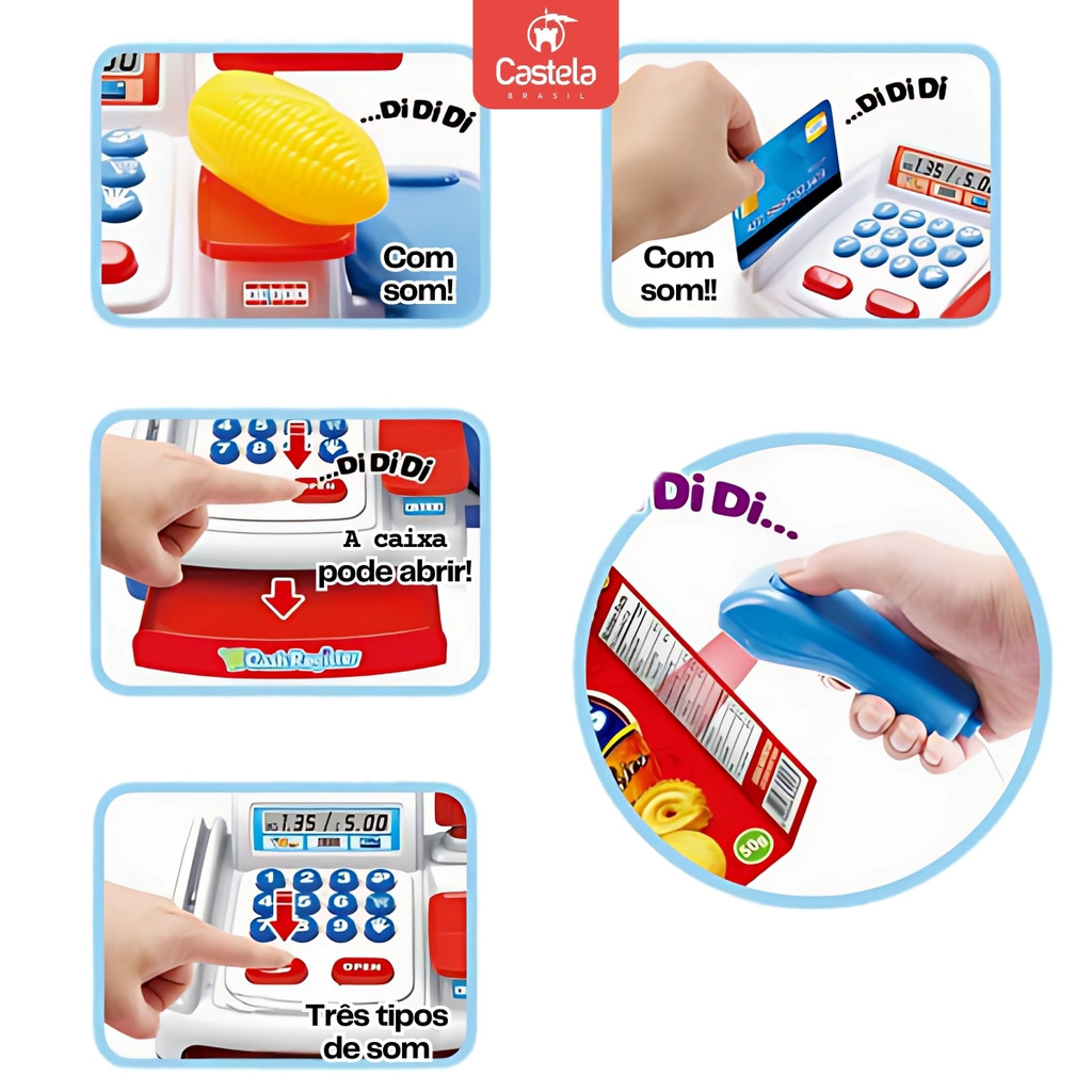 Caixa Registradora Infantil Com Som Luz E 20 Acessórios Completa Mini Mercadinho - Castela