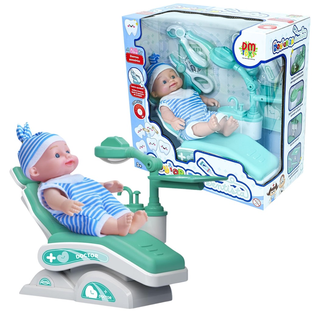 Brinquedo Boneca Doutor Dentista Com Acessórios Cadeira Ajustável Roupinha - Dm Toys