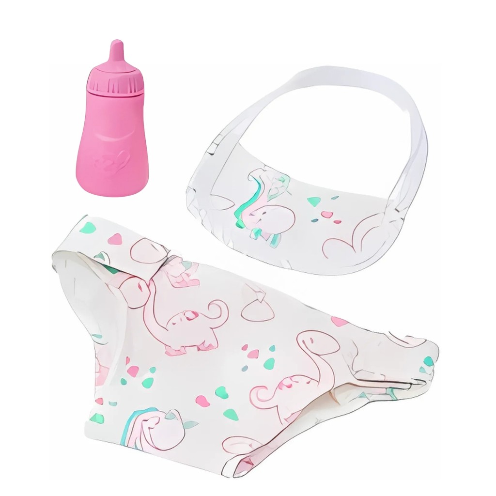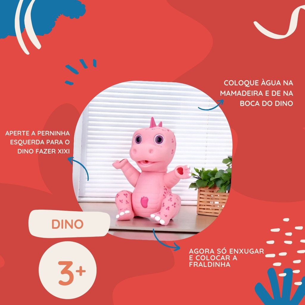 Boneco Dinossauro Faz Xixi Mamadeira Fralda E Babador