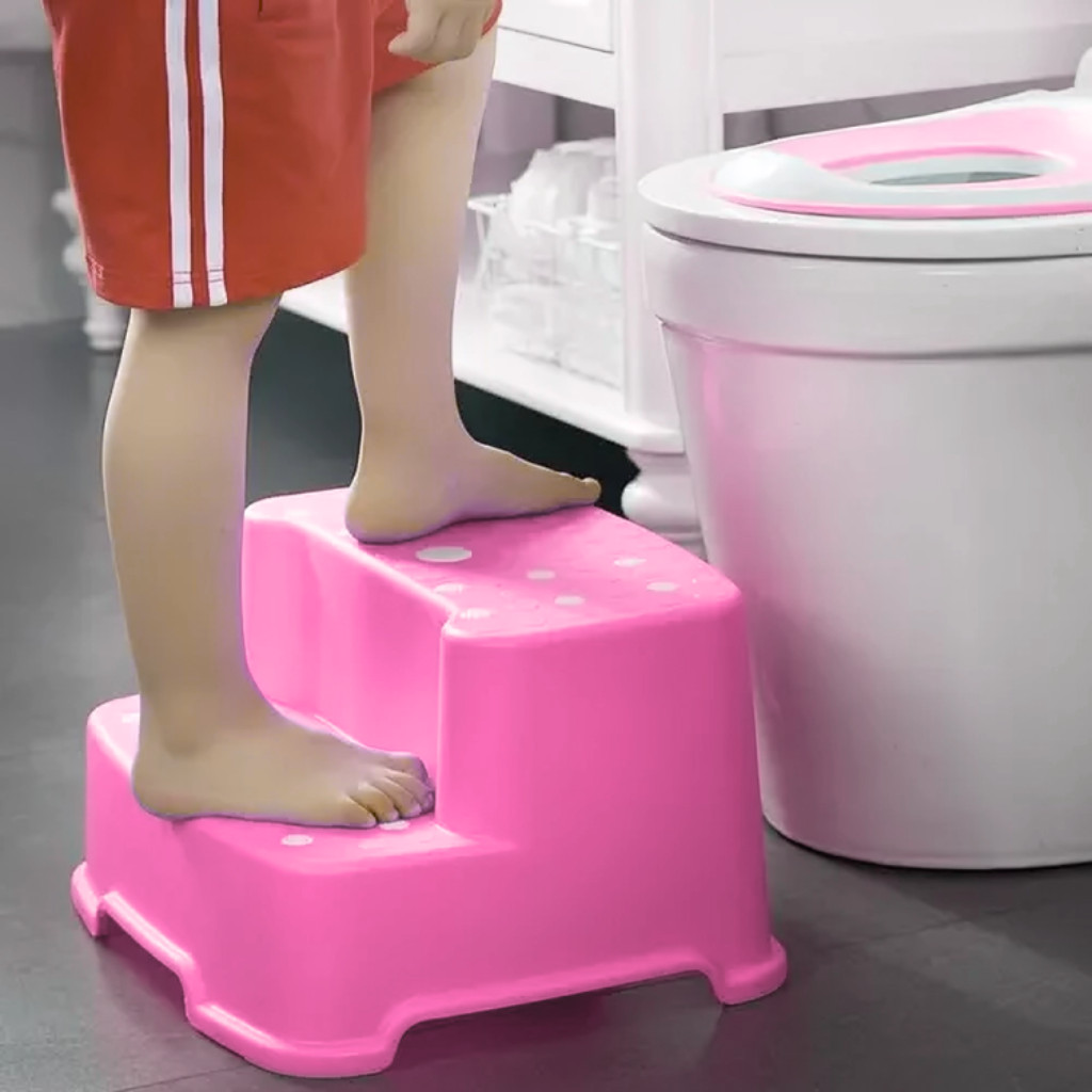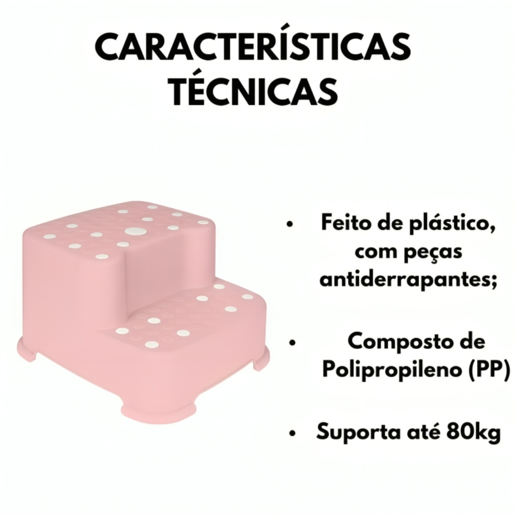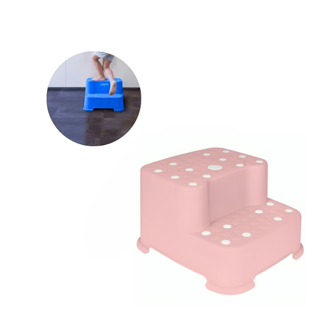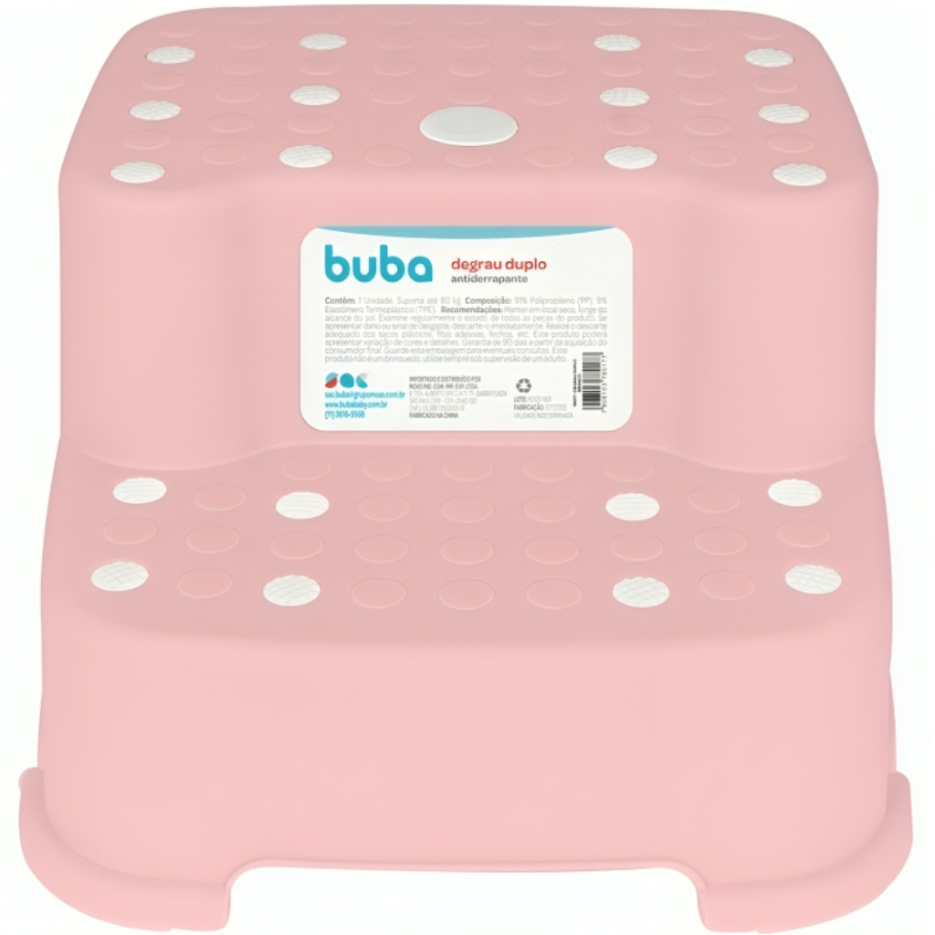 Degrau Duplo Rosa Bebe Infantil Antiderrapante 18018 Buba